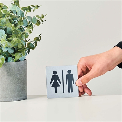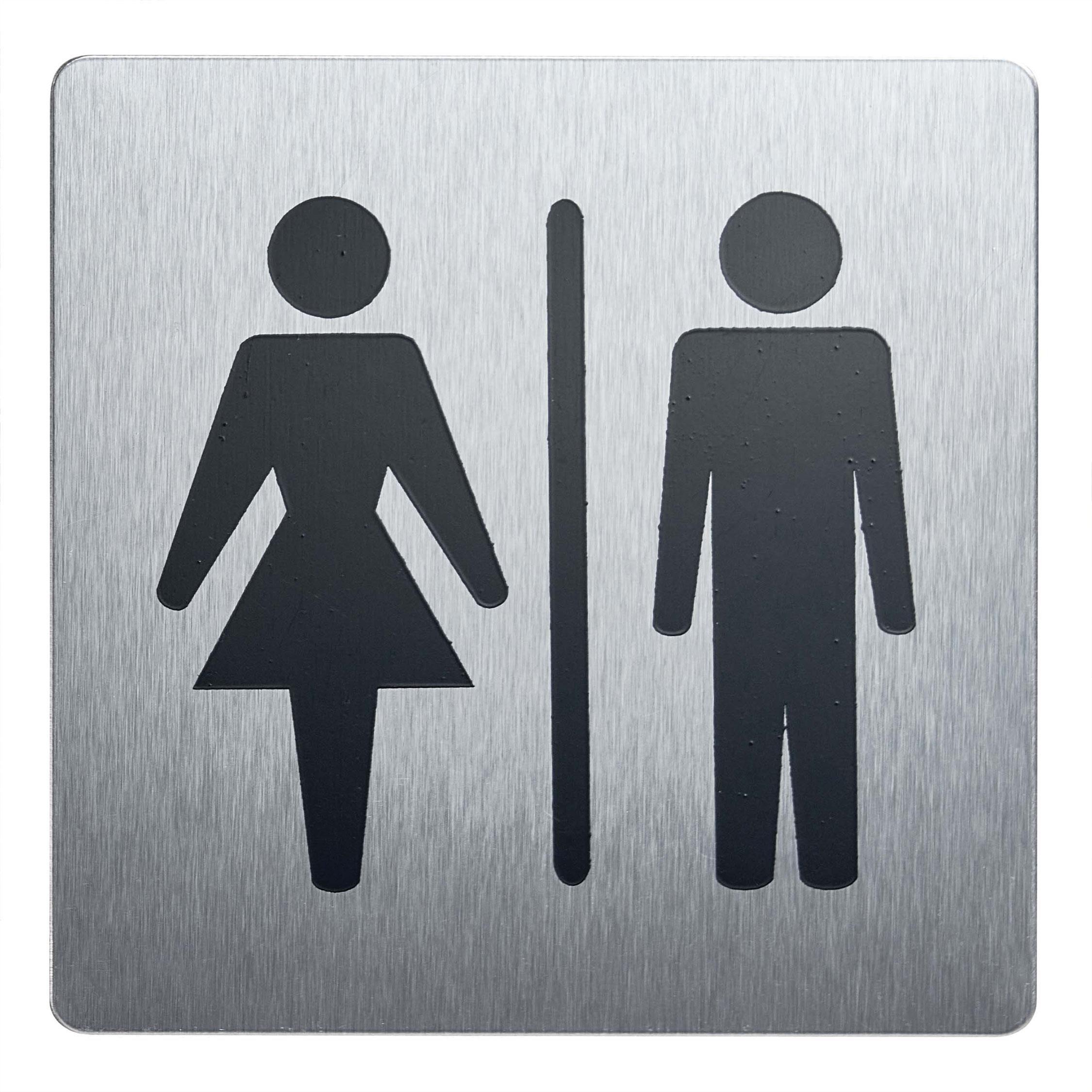 Vårt elegante piktogram i børstet rustfritt stål er en ideell løsning for tydelig merking av både dame-toalett og herre-toalett. De klassiske symbolene er lett å forstå og gir rask veivisning.