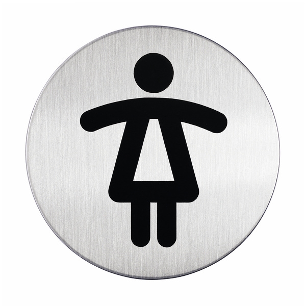 Rund WC dametoalett skilt av børstet rustfri stål som er ripefri.