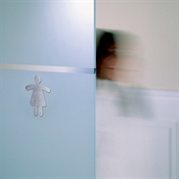 Dametoalett skilt av børstet rustfri stål som er ripefri.