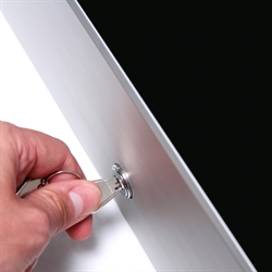 Stilren digital skilt til vegg i lekker, låsbar metall- og svart, herdet glassdesign. Den herdede glass- og metallkonstruksjon gir en sterk beskyttelse til skjermen mot støt og slag fra utsiden. Heng disse digitale skilter opp på din vegg og skap det ultimate blikkfang med dine egne video- eller bild presentasjoner.