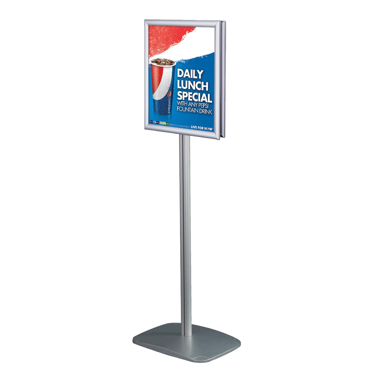 Dobbelsidig 150 cm høy aluminium infostand montert med 2 stk A3 klikkramme med 25mm profil - én på hver side.