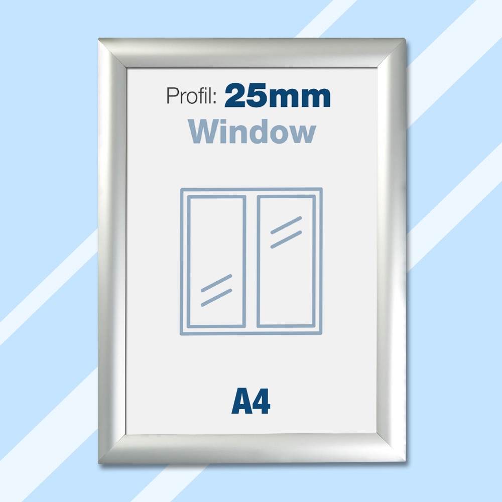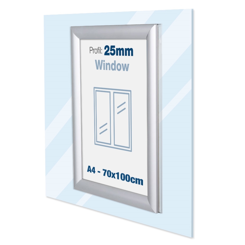 Disse vindusskiltene er basert på vanlige klikkrammer med attraktive 25 mm profiler. De er modifisert for bruk på vinduer, og brukes ofte av butikker og restauranter.