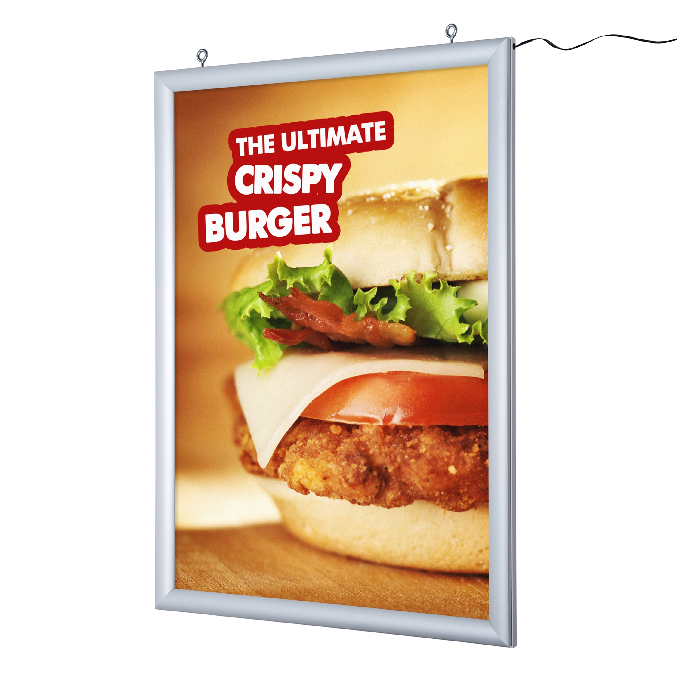 Fantastiske og iøynefallende dobbeltsidige LED-opplyste plakaterammer av høy kvalitet i ultraslank design. 30 mm klikkrammeprofil. Klikkrammeprofilen på LED Poster Frames gjør det enkelt og raskt å erstatte innsatte plakater og budskap. For takmontering.