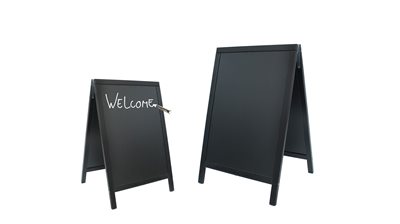 Disse sandwichskiltene kan kjøpes i flere populære størrelser, med målene 55 x 85 cm eller 70 x 125 cm.
