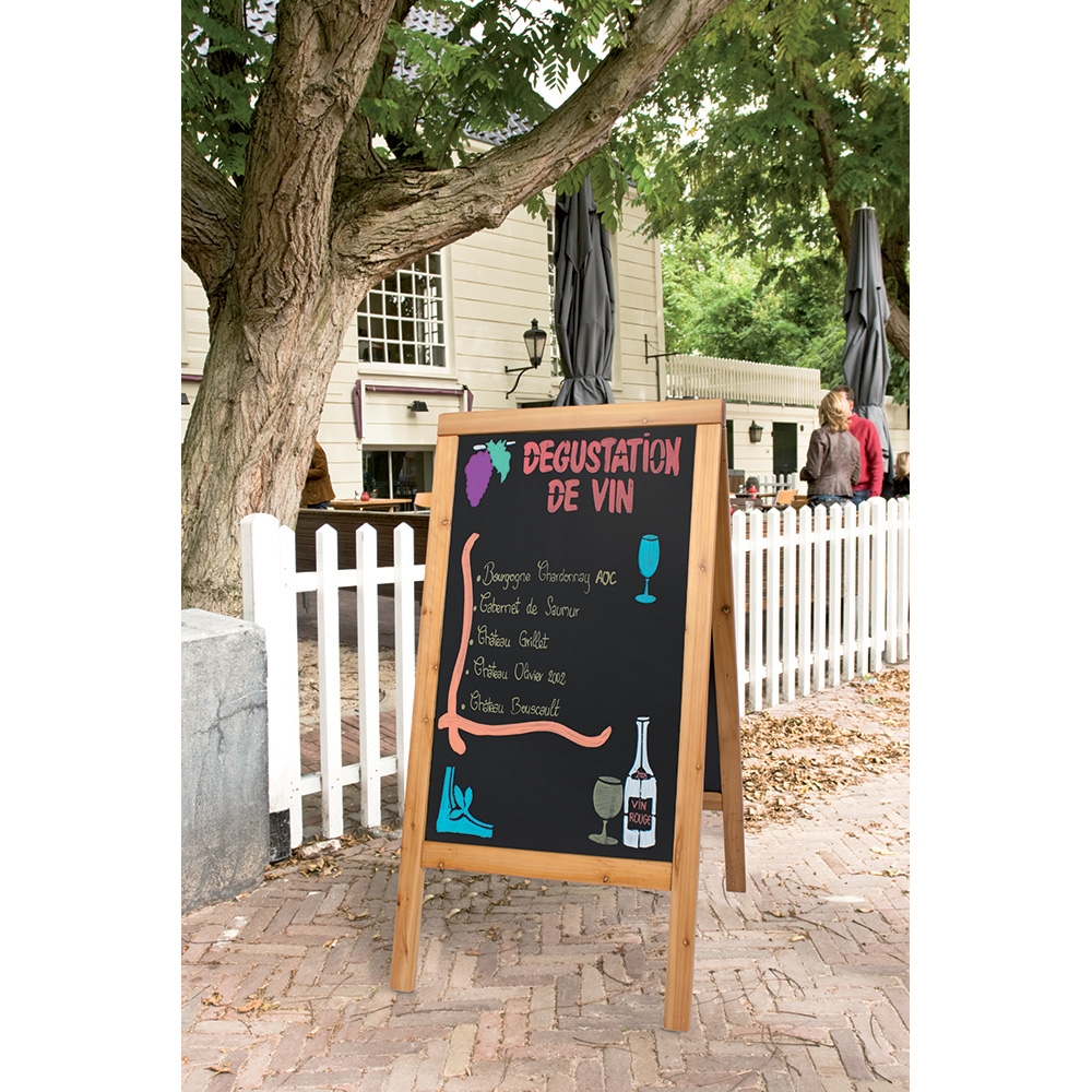 Duplo teak kritt tavle A-skilt er utstyrt med en robust furutre ramme som er behandlet med flere lag av beskyttende kvalitetslakk.