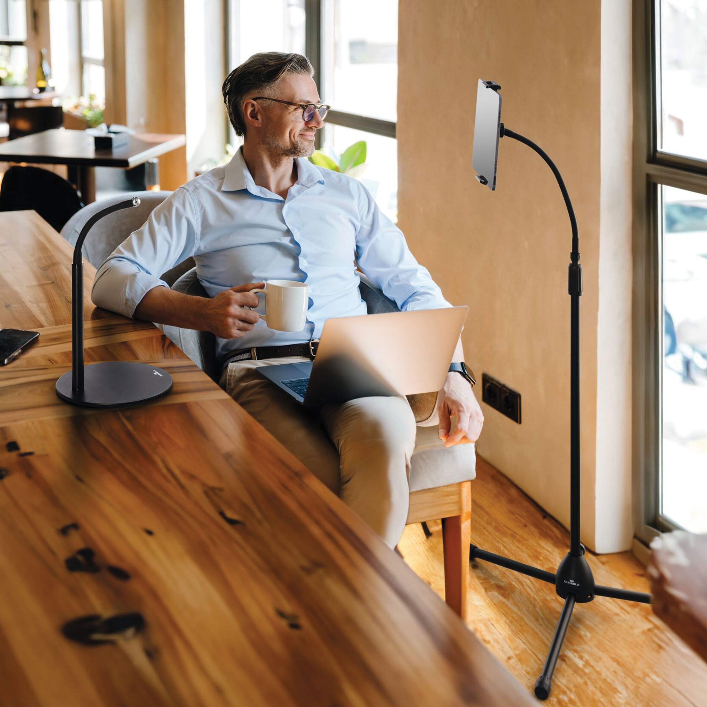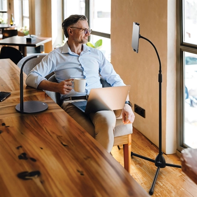 En fleksibel løsning for deg som bruker nettbrett i hverdagen - enten det er til møter, matlaging, presentasjoner eller kundedisplay. Holderen passer nettbrett fra 4,7" til 13", og kan brukes på gulvstativ eller festes til bord. Den fleksible armen og 360° kuleleddet gir deg full frihet i både liggende og stående visning.
