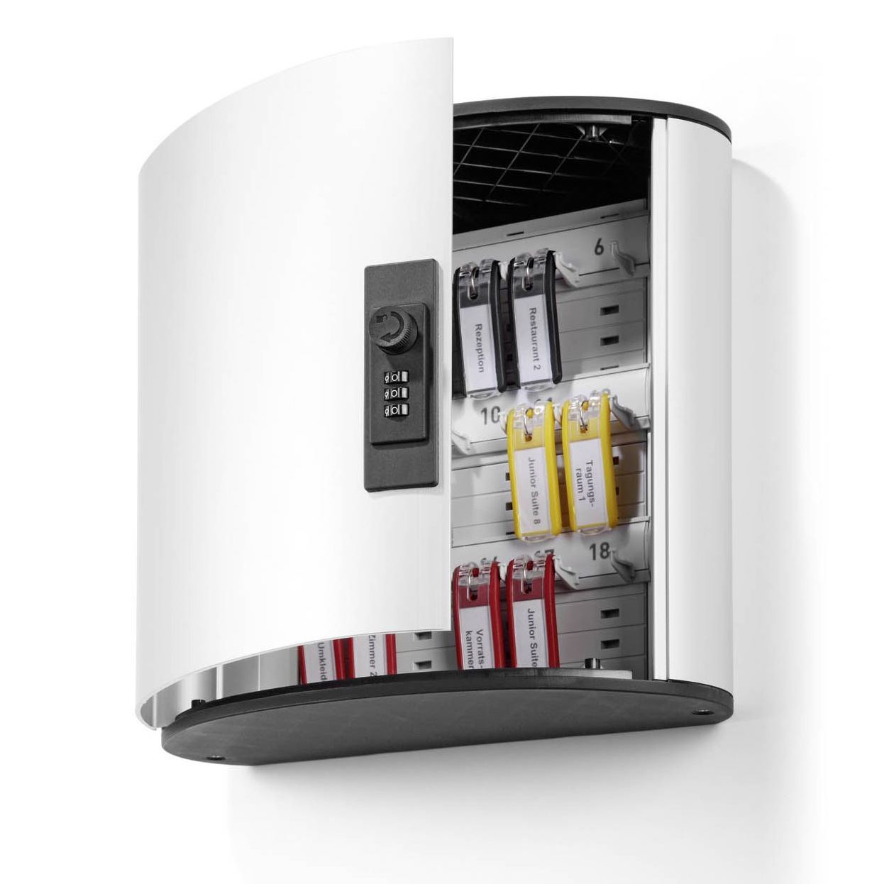 Skapet leveres med 6 stk nøkkelskilter - Flere kan kjøpes som tilbehør.
