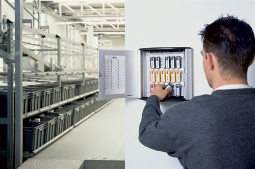 Skapet har et stilrent aluminiumskabinett og passer godt inn i de fleste interiører. Leveres med en overskuelig innholdsfortegnelse, som gjør det lett at finne den rette nøkkel.