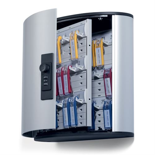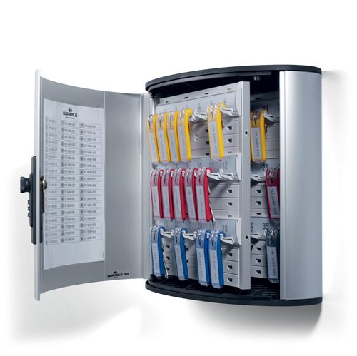 Skapet har et stilrent aluminiumskabinett og passer godt inn i de fleste interiører. Leveres med en overskuelig innholdsfortegnelse, som gjør det lett at finne den rette nøkkel.