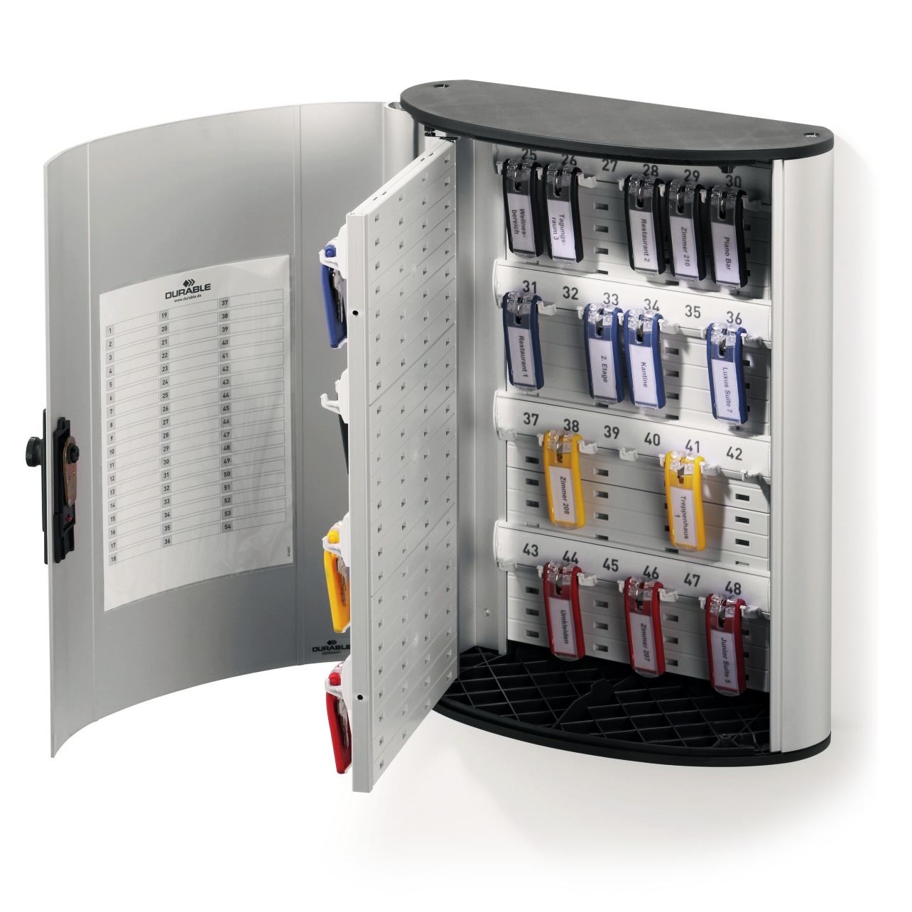 Skapet har et stilrent aluminiumskabinett og passer godt inn i de fleste interiører. Leveres med en overskuelig innholdsfortegnelse, som gjør det lett at finne den rette nøkkel.