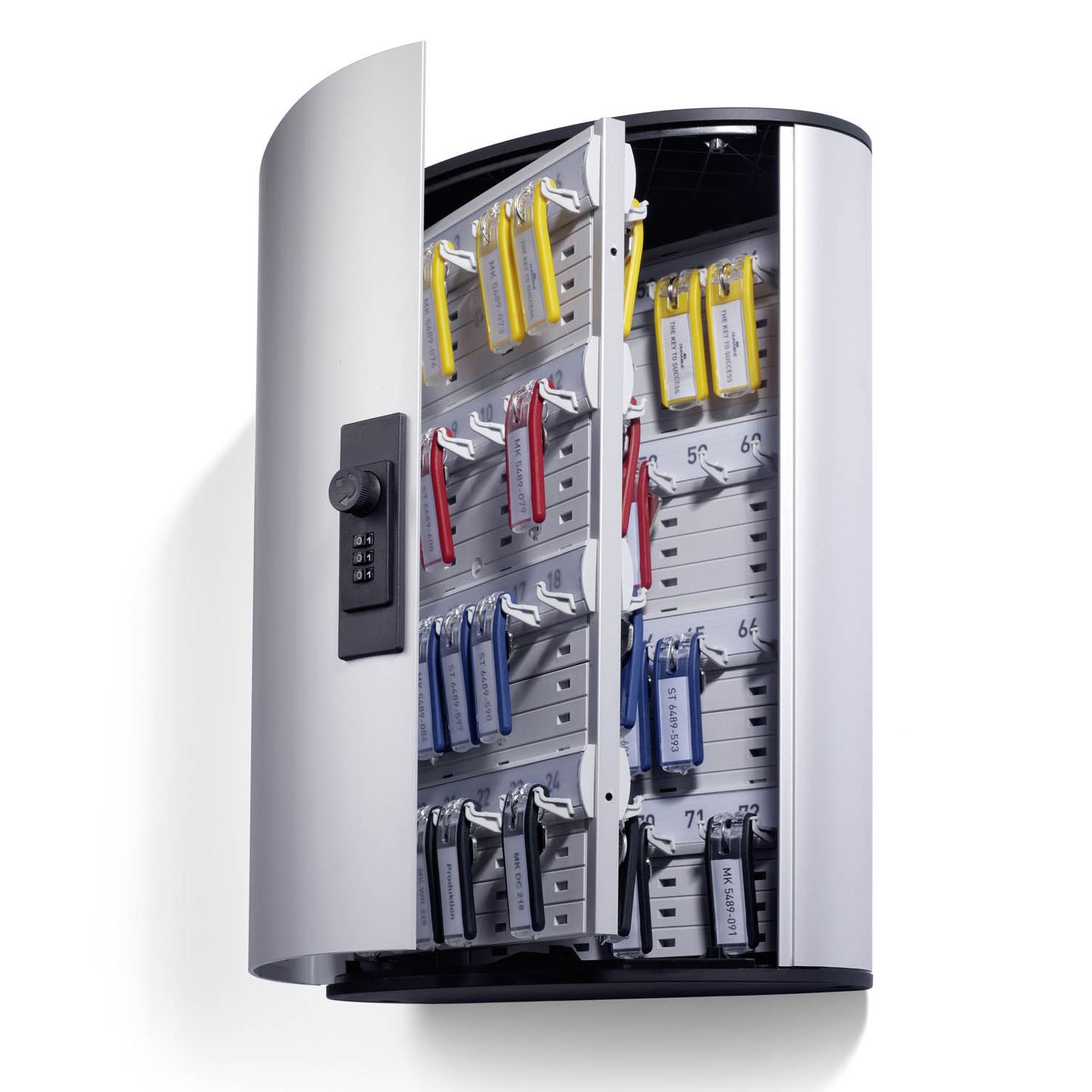 Skapet har et stilrent aluminiumskabinett og passer godt inn i de fleste interiører. Leveres med en overskuelig innholdsfortegnelse, som gjør det lett at finne den rette nøkkel.