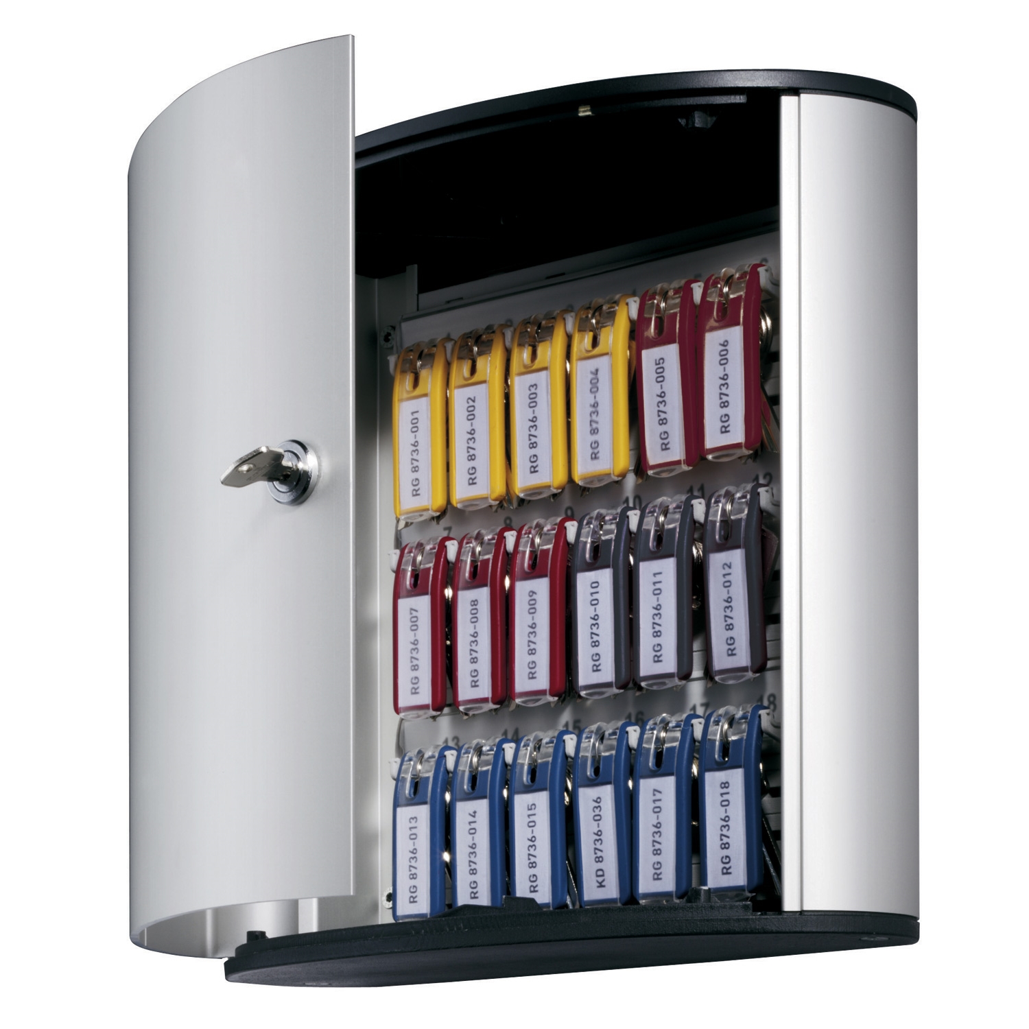 Skapet har et stilrent aluminiumskabinett og passer godt inn i de fleste interiører. Leveres med en overskuelig innholdsfortegnelse, som gjør det lett at finne den rette nøkkel.