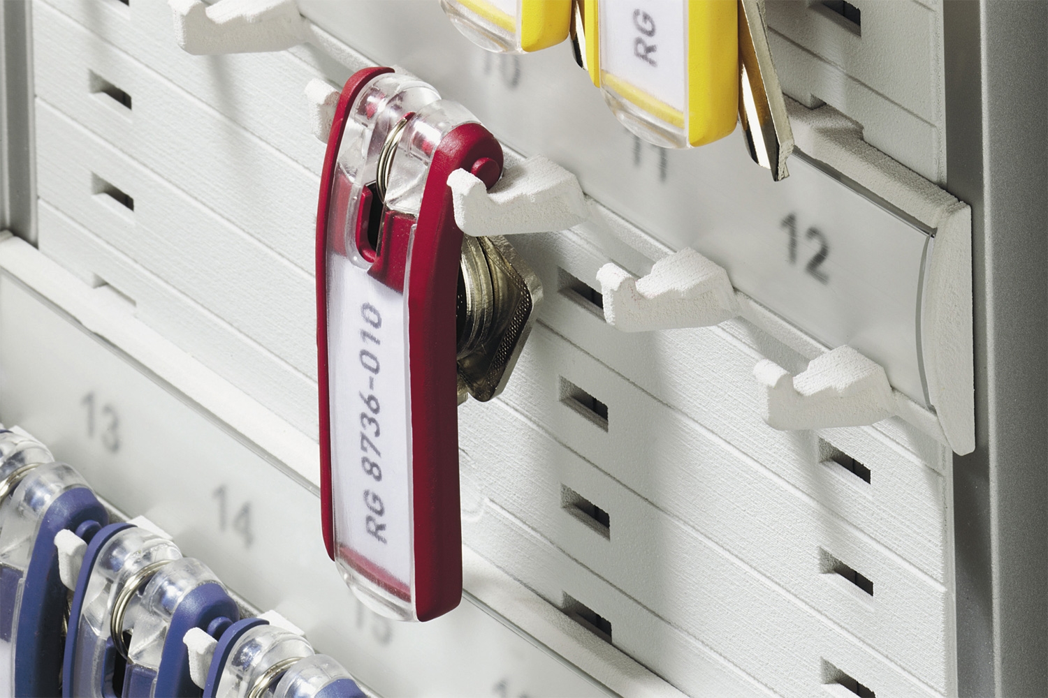 Skapets nøkkelkroker kan enkelt reguleres i høyden, så de kan tilpasses nøkler i forskjellige størrelser.