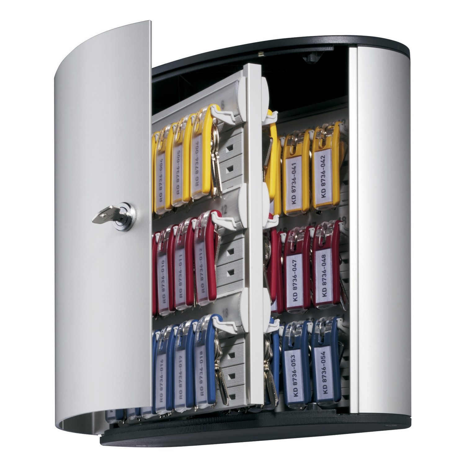 Skapet har et stilrent aluminiumskabinett og passer godt inn i de fleste interiører. Leveres med en overskuelig innholdsfortegnelse, som gjør det lett at finne den rette nøkkel.