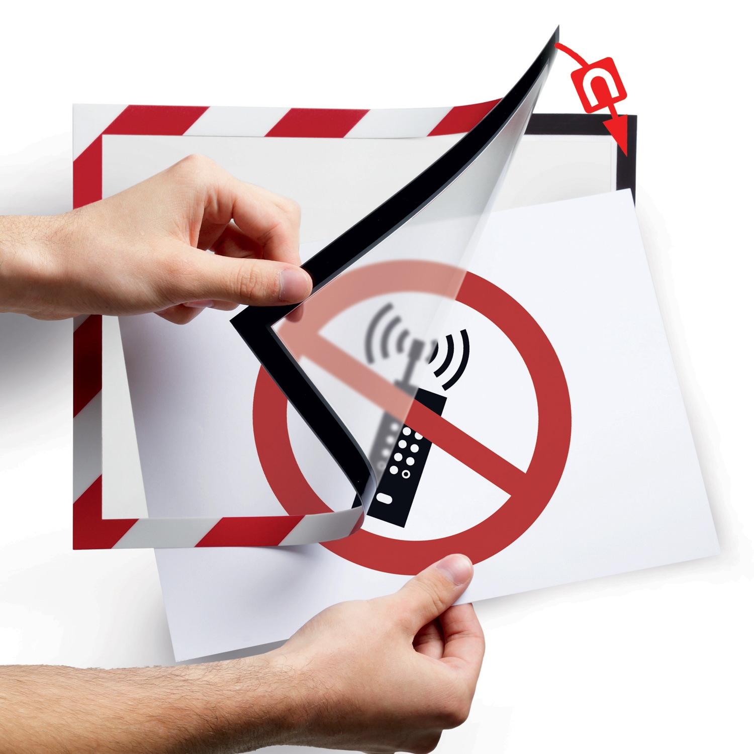 Duraframe® Security Rød/Hvit - Selvklebende A4 magnetramme - 2-pakning
