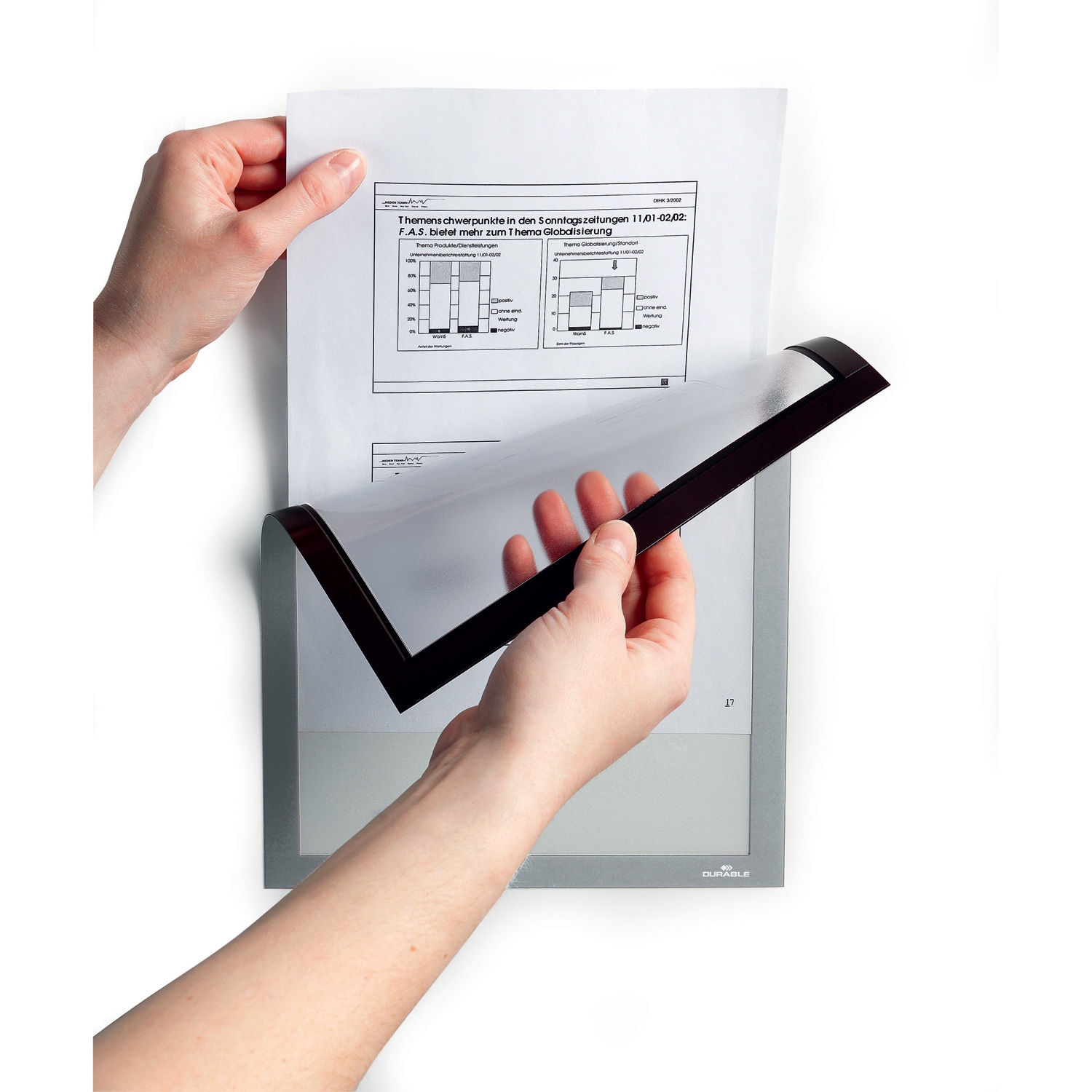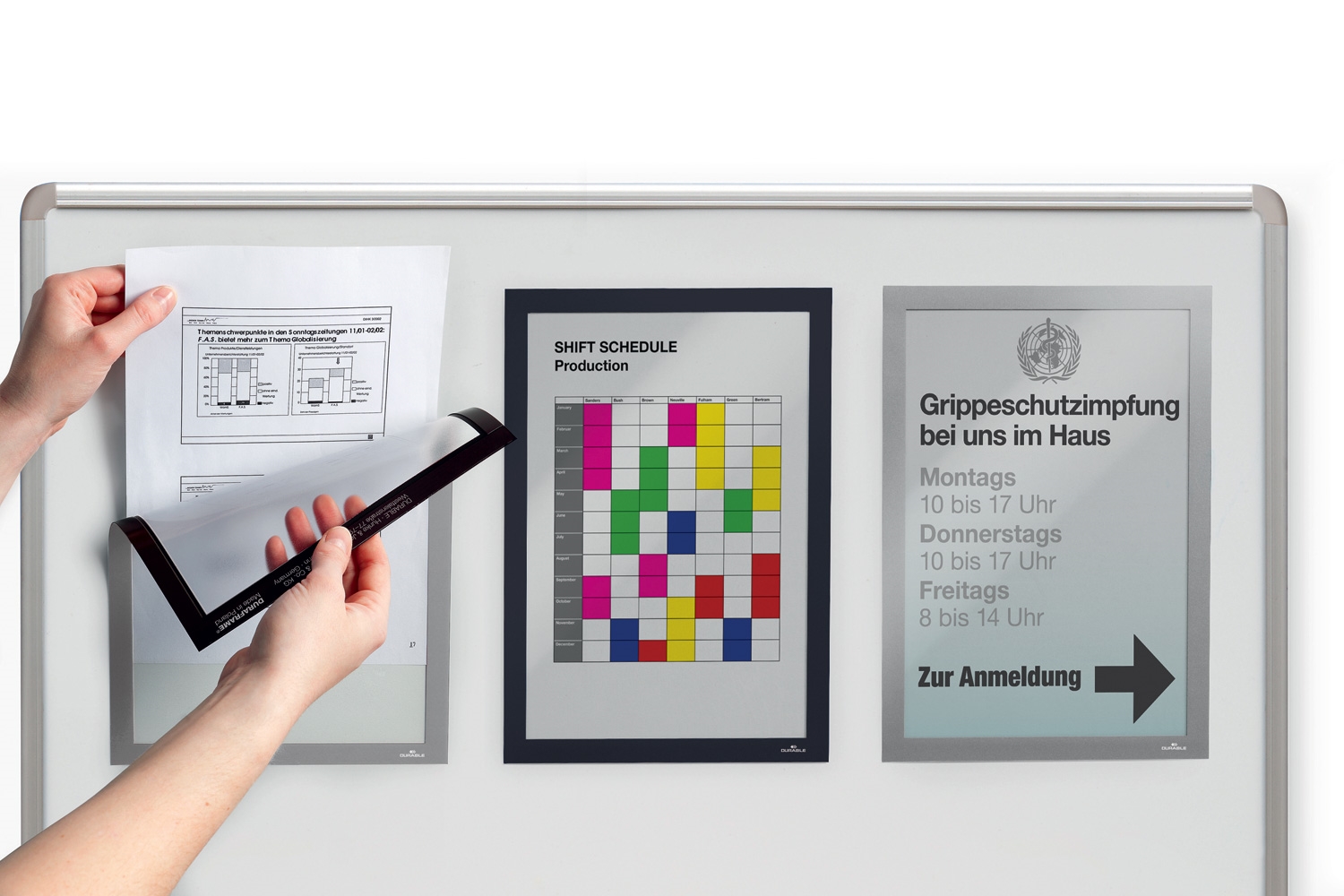 Sølv magnetisk inforamme fra Durable, som er den ideelle løsningen for å vise informasjon og budskap på metalloverflater, f.eks. tavler, maskiner, apparater m.m.