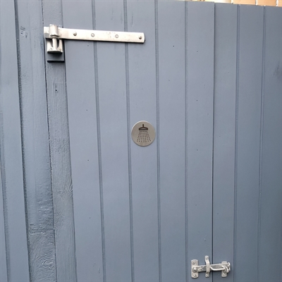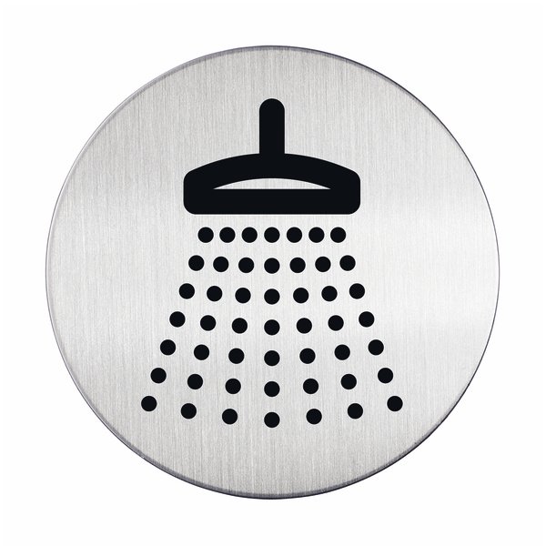 Rund dusj dørskilt av børstet rustfri stål som er ripefri.