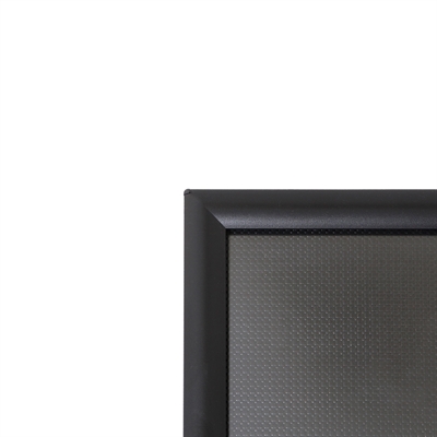 Montert med en sorteloksert klikkramme med 25 mm profil og APET-frontplate med antirefleks som gjør utskiftning av budskapet enkelt.