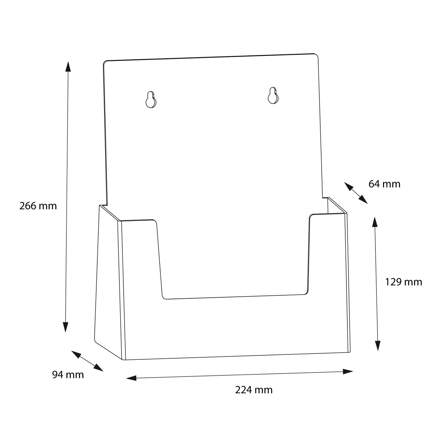 Ekstra dyp brosjyreholder i akryl med innvendig dybde på 48 mm (M65), 53 mm (A5) eller 62 mm (A4), som gir opptil 100 % mer plass enn standardmodellen.