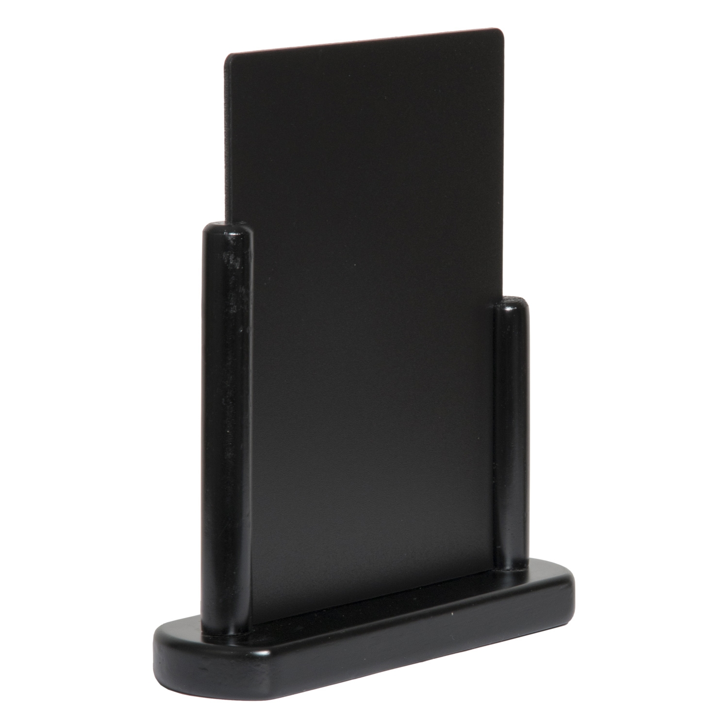 Elegant svart menytavle med hard gummitrebase og flyttbar skrivetavle.