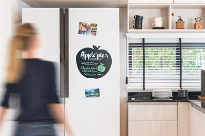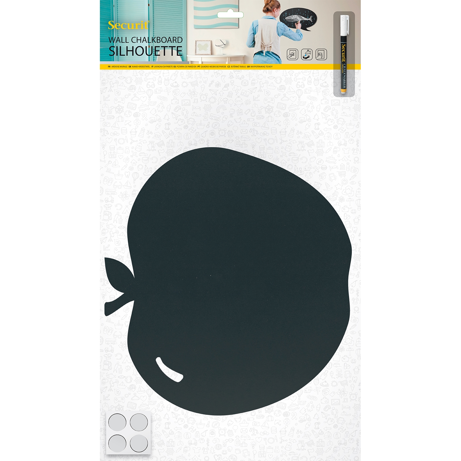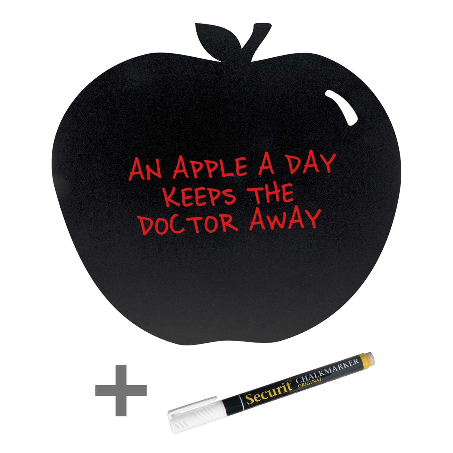 Eple Silhouette tavleskilt for vegg. Tavlen er værbestandig og fleksibel, med en ripebestandig skriveoverflate som er egnet for bruk med kritt marker penner. Den kan rengjøres med vann og klut eller med våre krittrengjøringsprodukter.