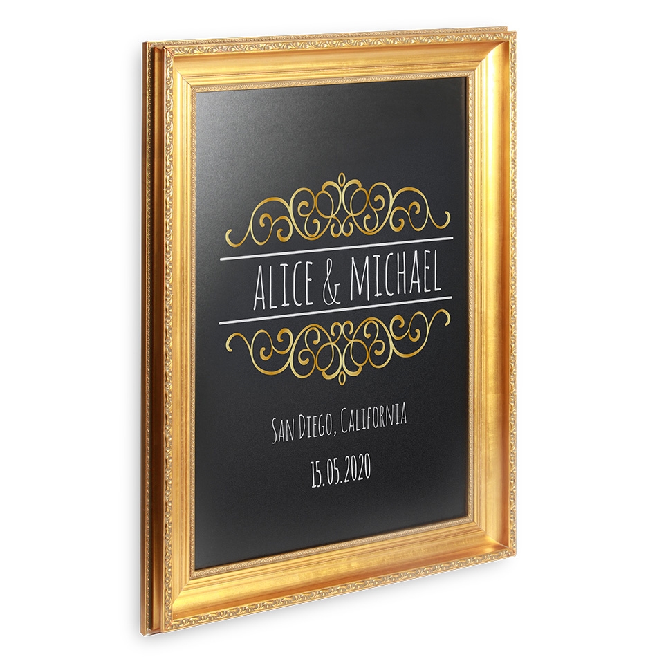 Flott og sofistikert inngravert ramme beskyttet av en luksuriøs gull farget coating.