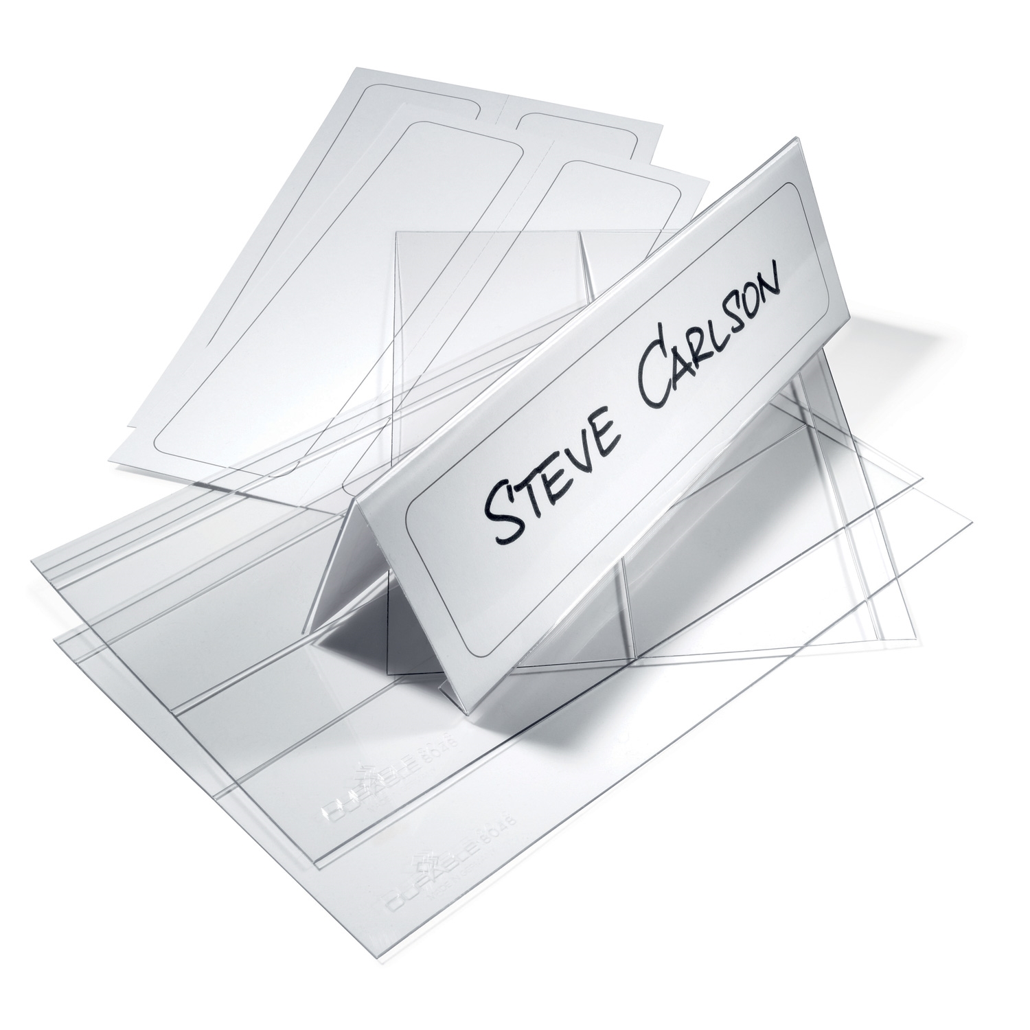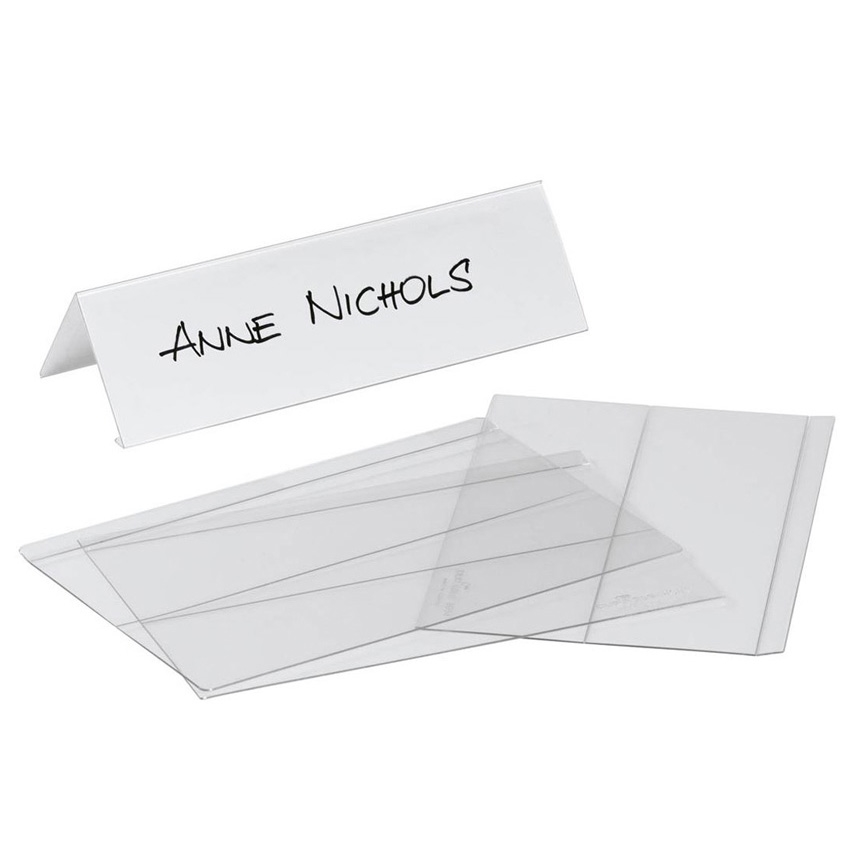Foldbar holder av PET til bordnavnekort til konferanser, møter, prisskilt mm.