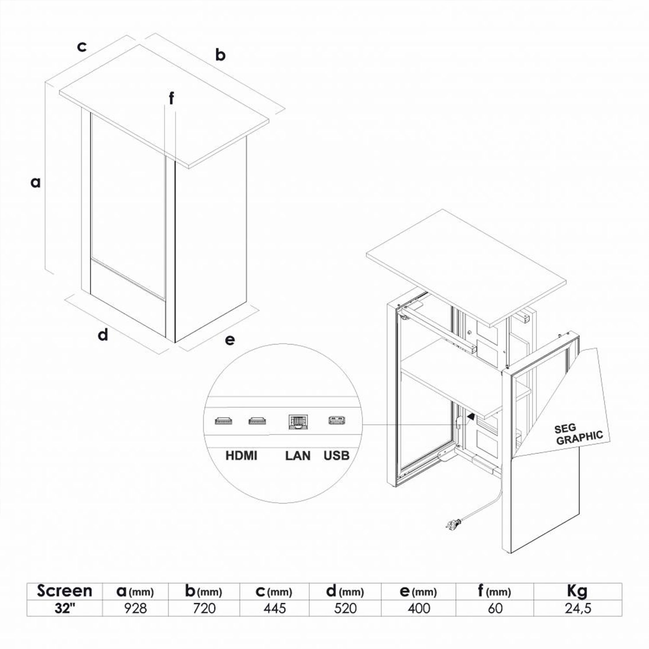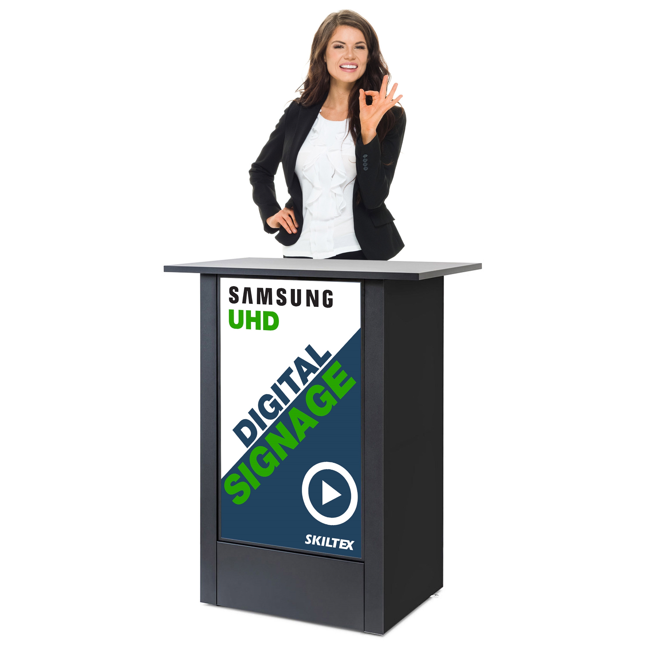 Den 32" digitale Samsung skjermen gjør presentasjonen av merkevaren og produktet ditt levende og imponerende. Takket være plug & play-funksjonen kan du enkelt bytte innholdet på skjermen, når som helst.
