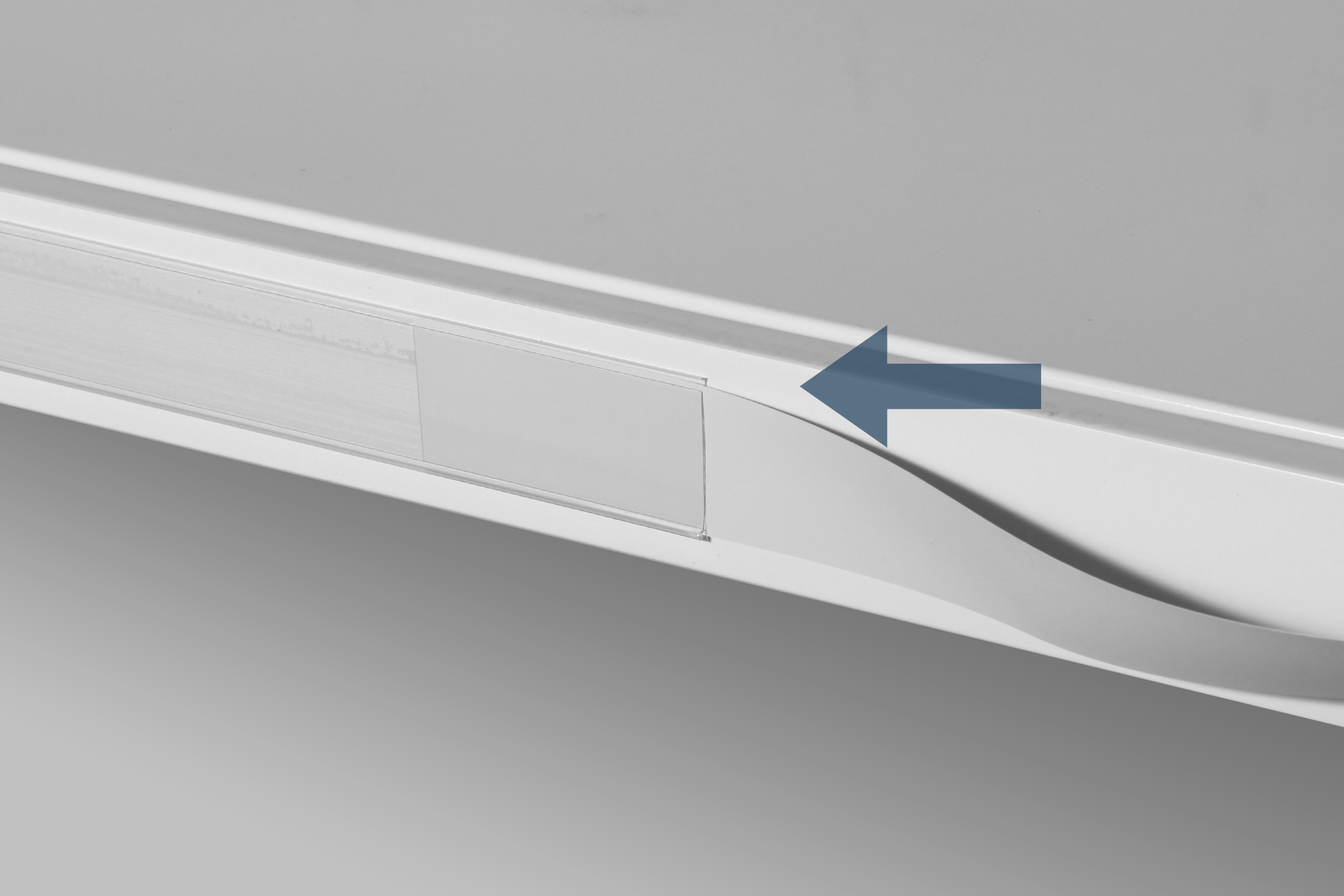 En grå hylleforkant kan raskt og effektivt sørge for, at fange kundens oppmerksomhet på tilbud og spotvarer, samt gi en flottere og mere profesjonel varepresentasjon.