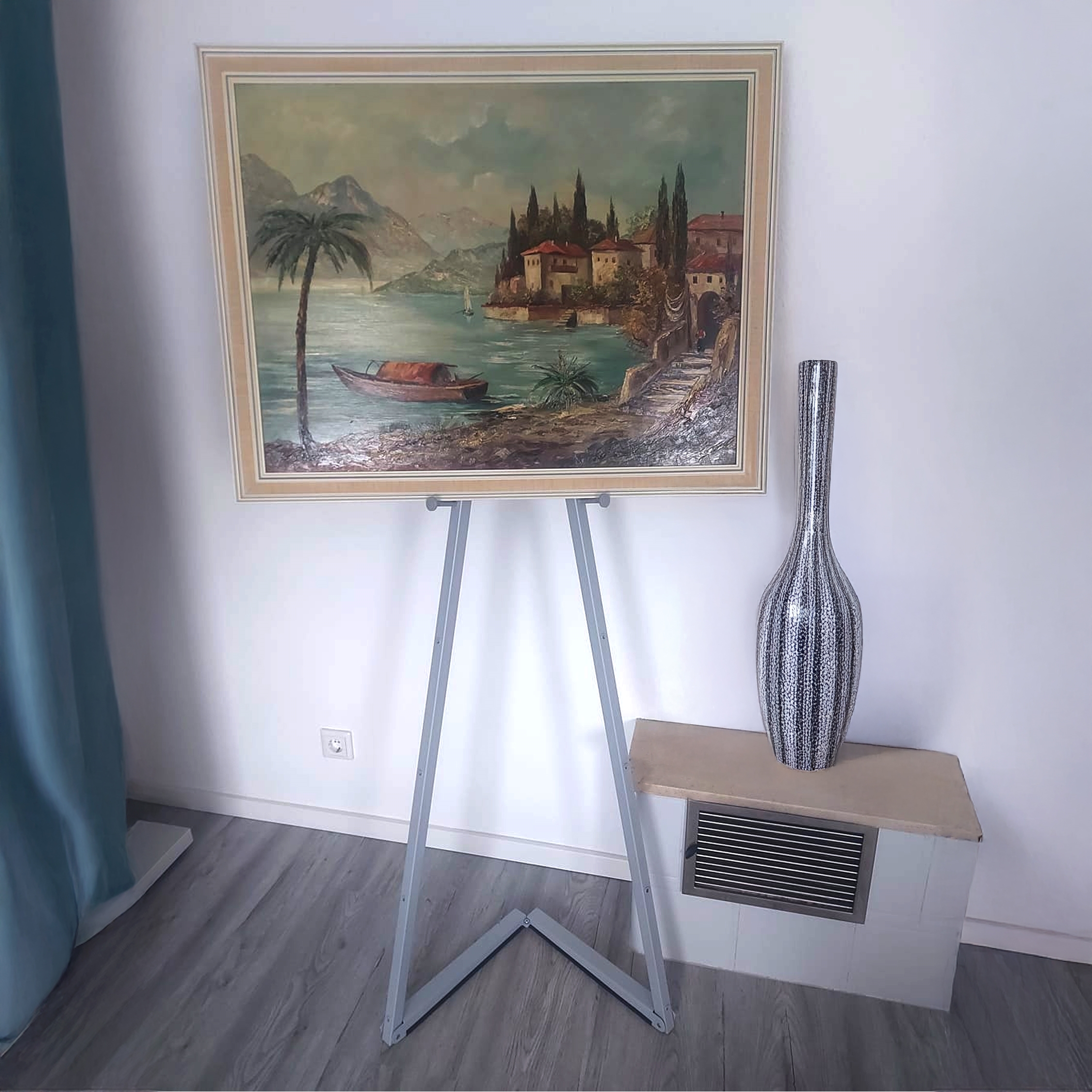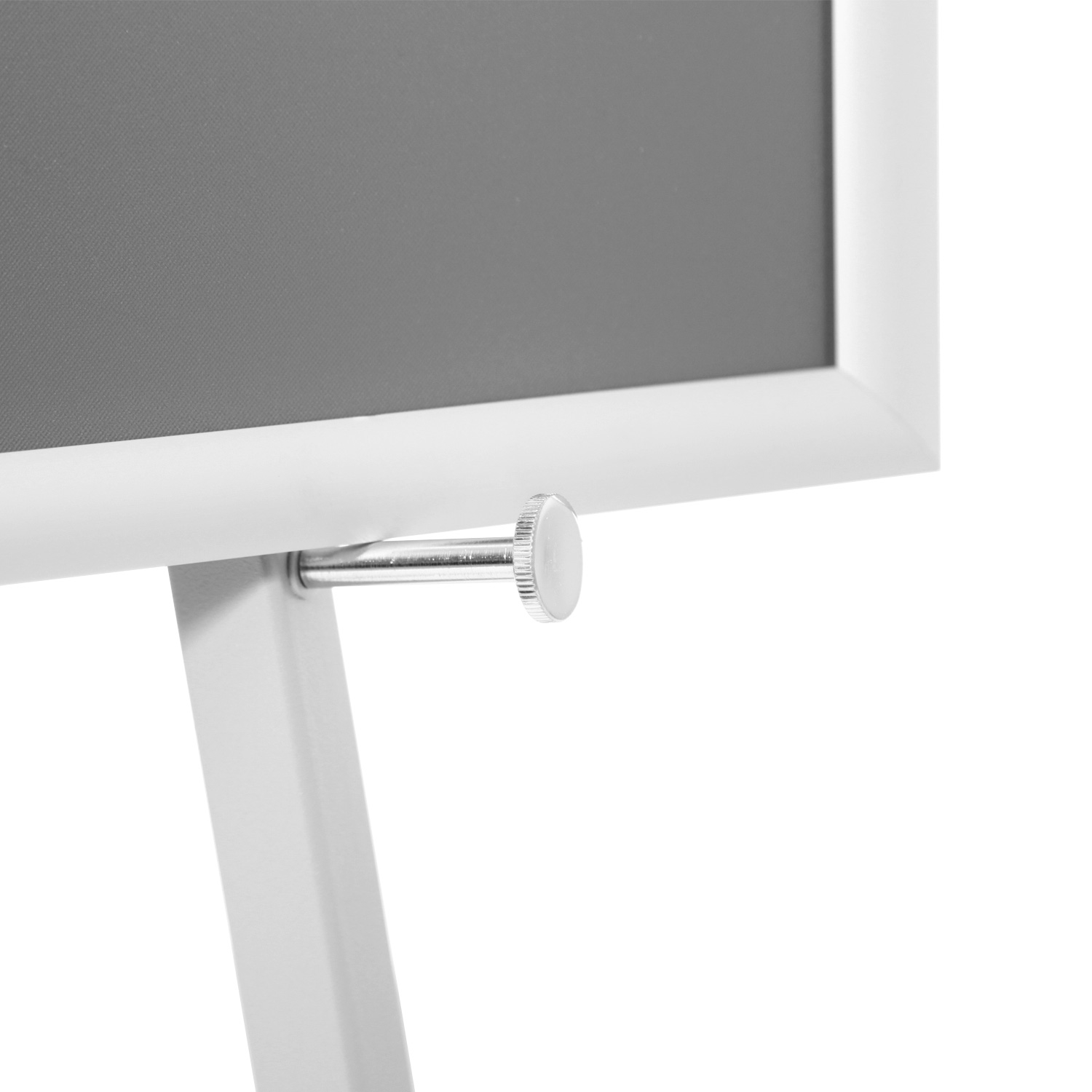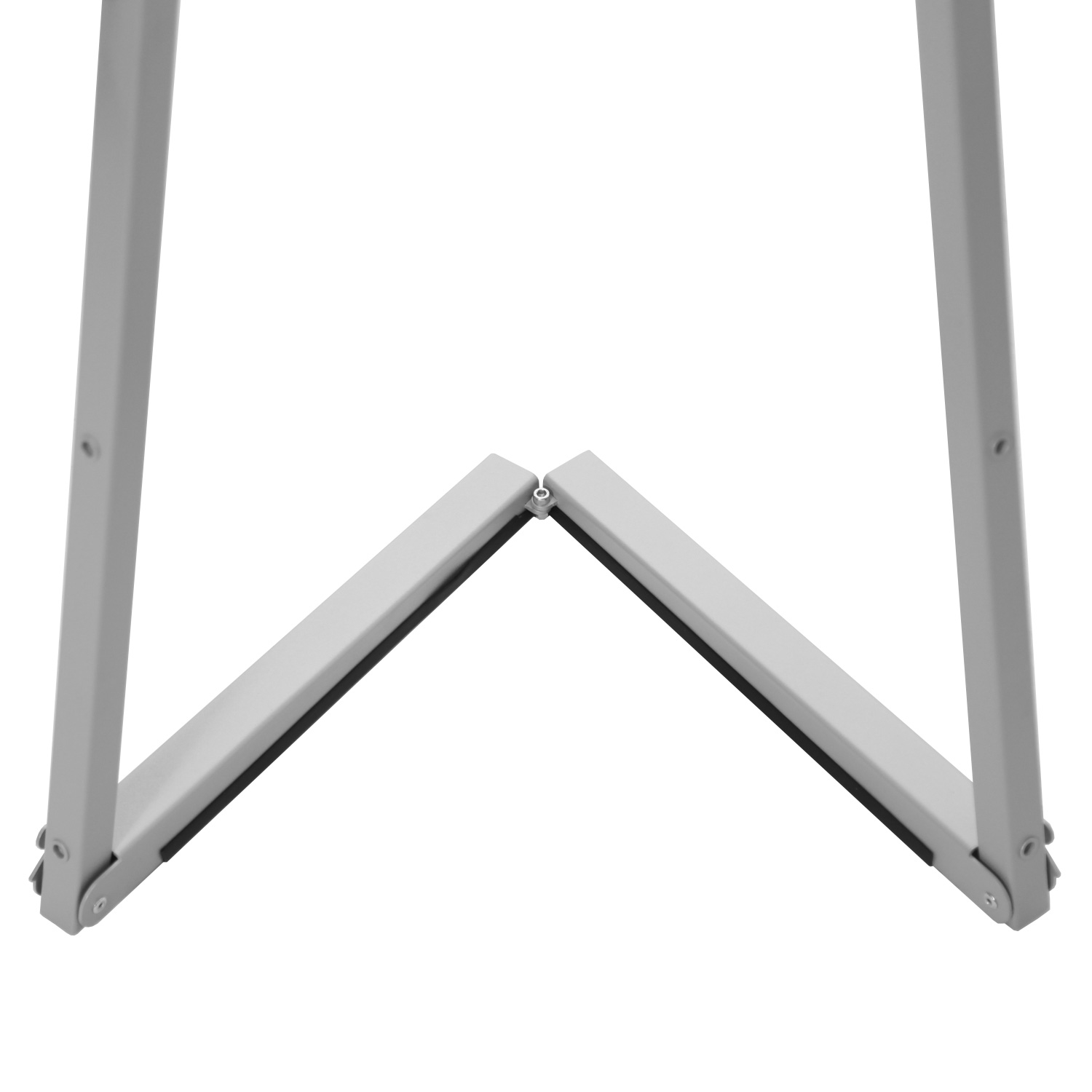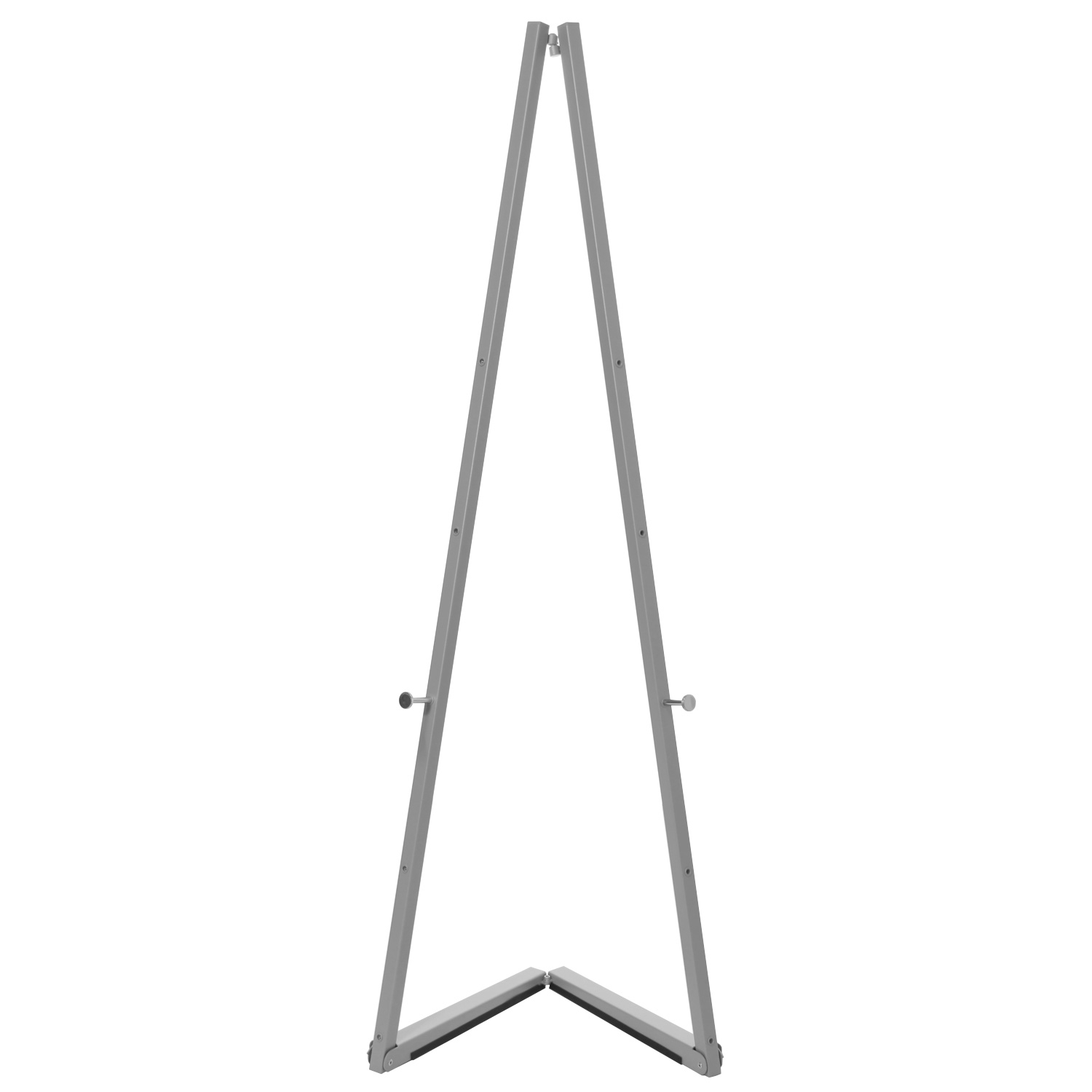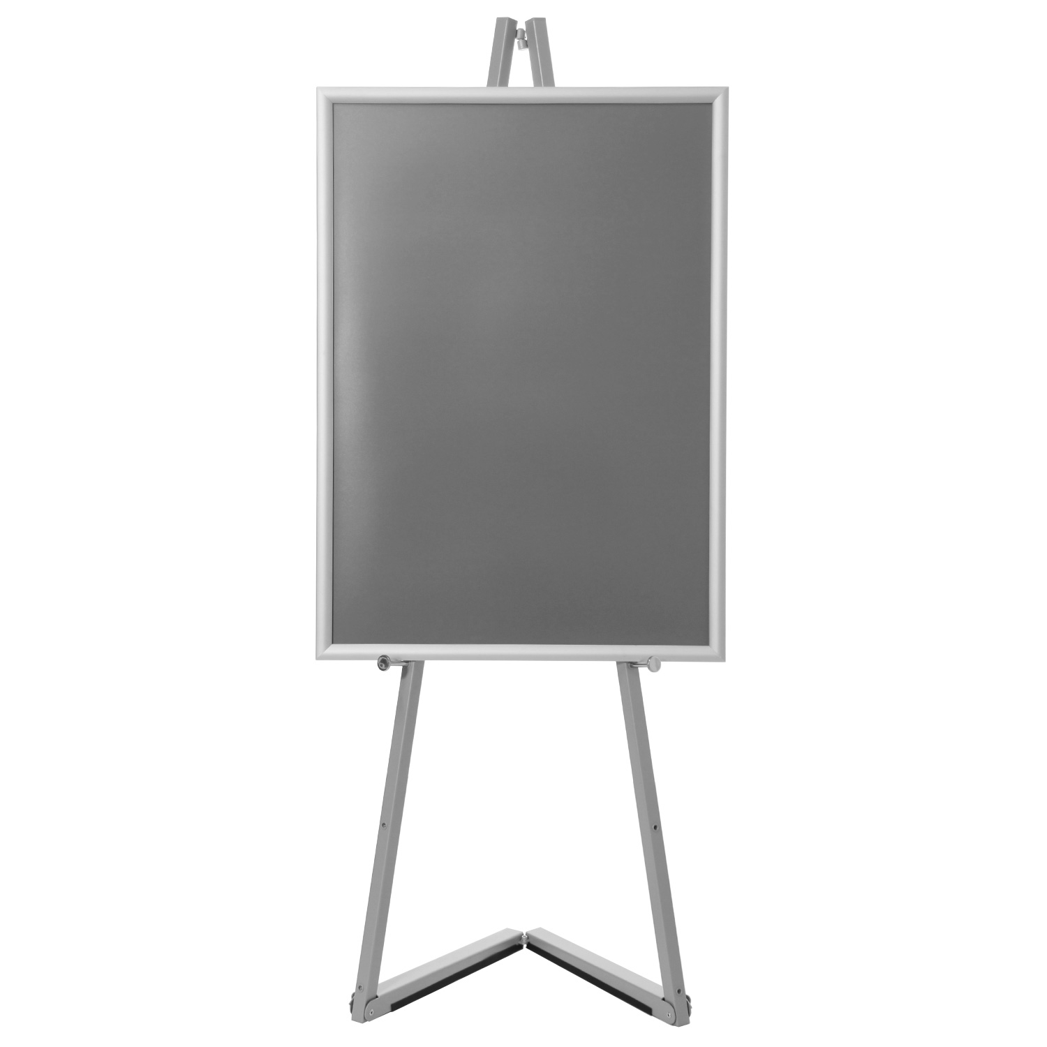 Sølv gulv staffeli til klikkrammer er en modernisert versjon av det klassiske staffeli til malerier. Staffeliet er laget av stål og er et utrolig brukervennlig produkt som settes opp og pakkes sammen på under 30 sekunder og transporteres uten problem og står samtidig solid på gulvet. Det understøtter klikkrammer i størrelsene: A4, A3, A2, B2, A1, B1 og A0 i både høy- og bredformat.