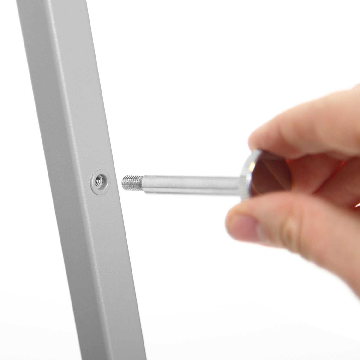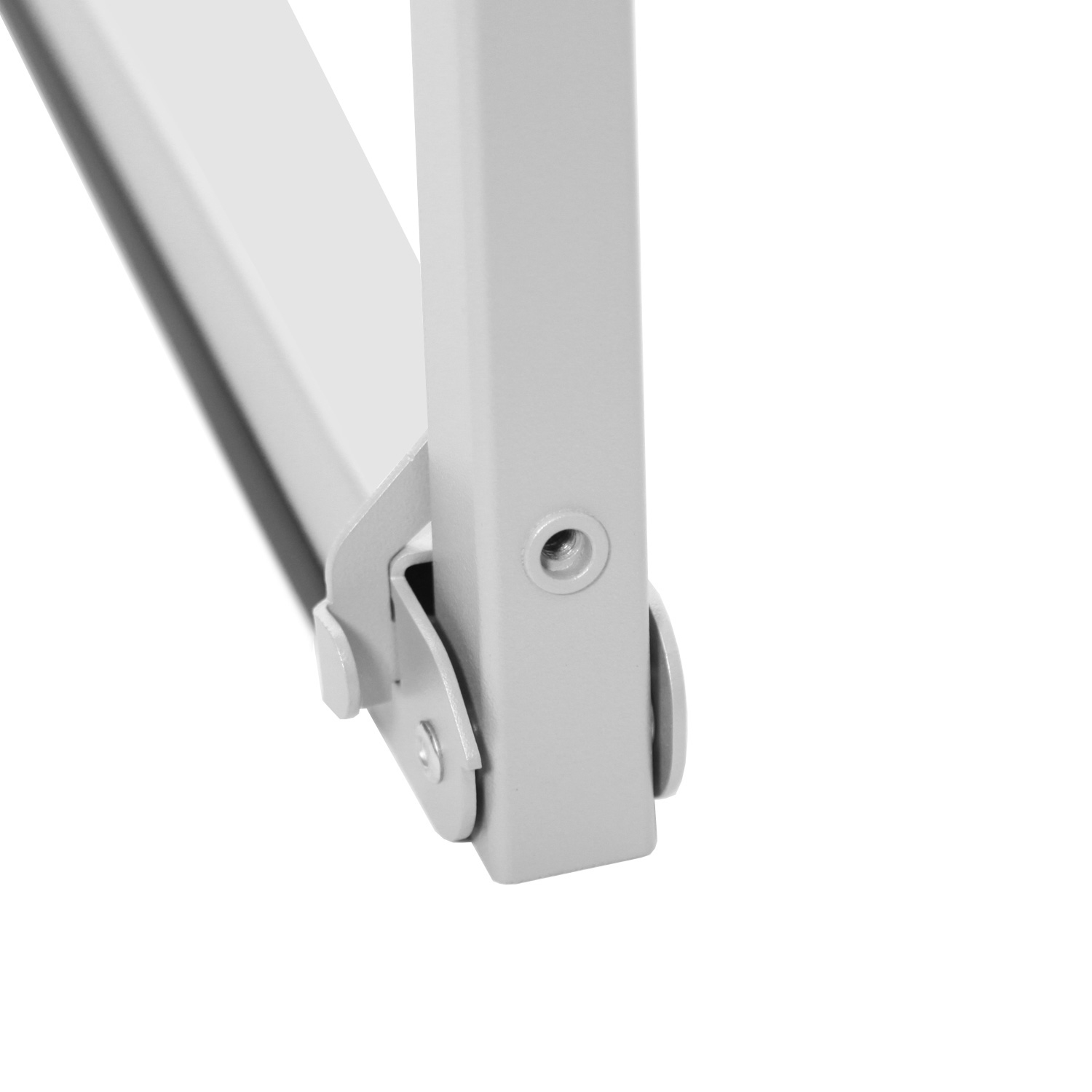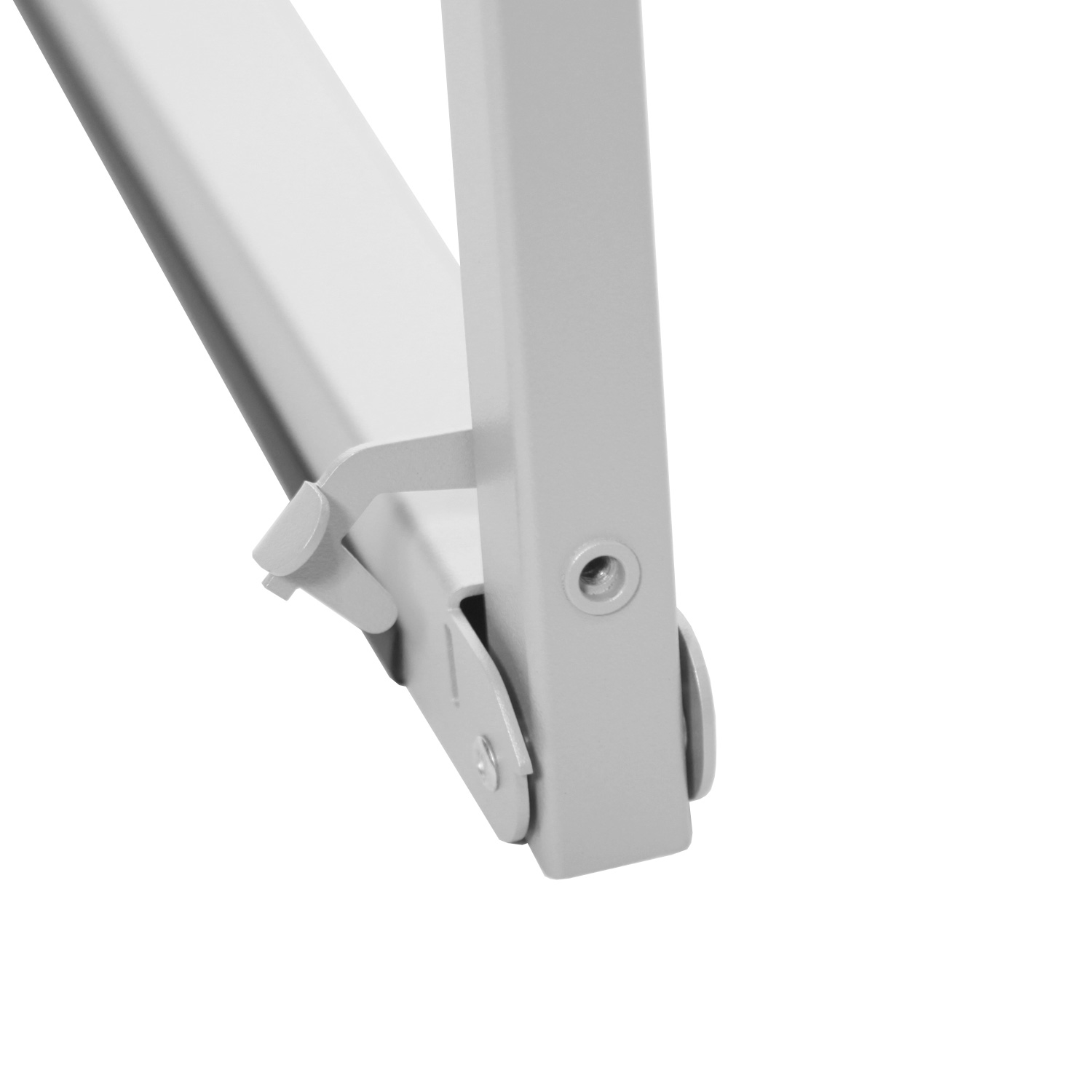 På hvert bein er der 5 huller, hvor 2 skruer settes i og brukes til at holde klikkrammene. Rammene står støttet langs staffeliet og sitter ikke desidert fast.