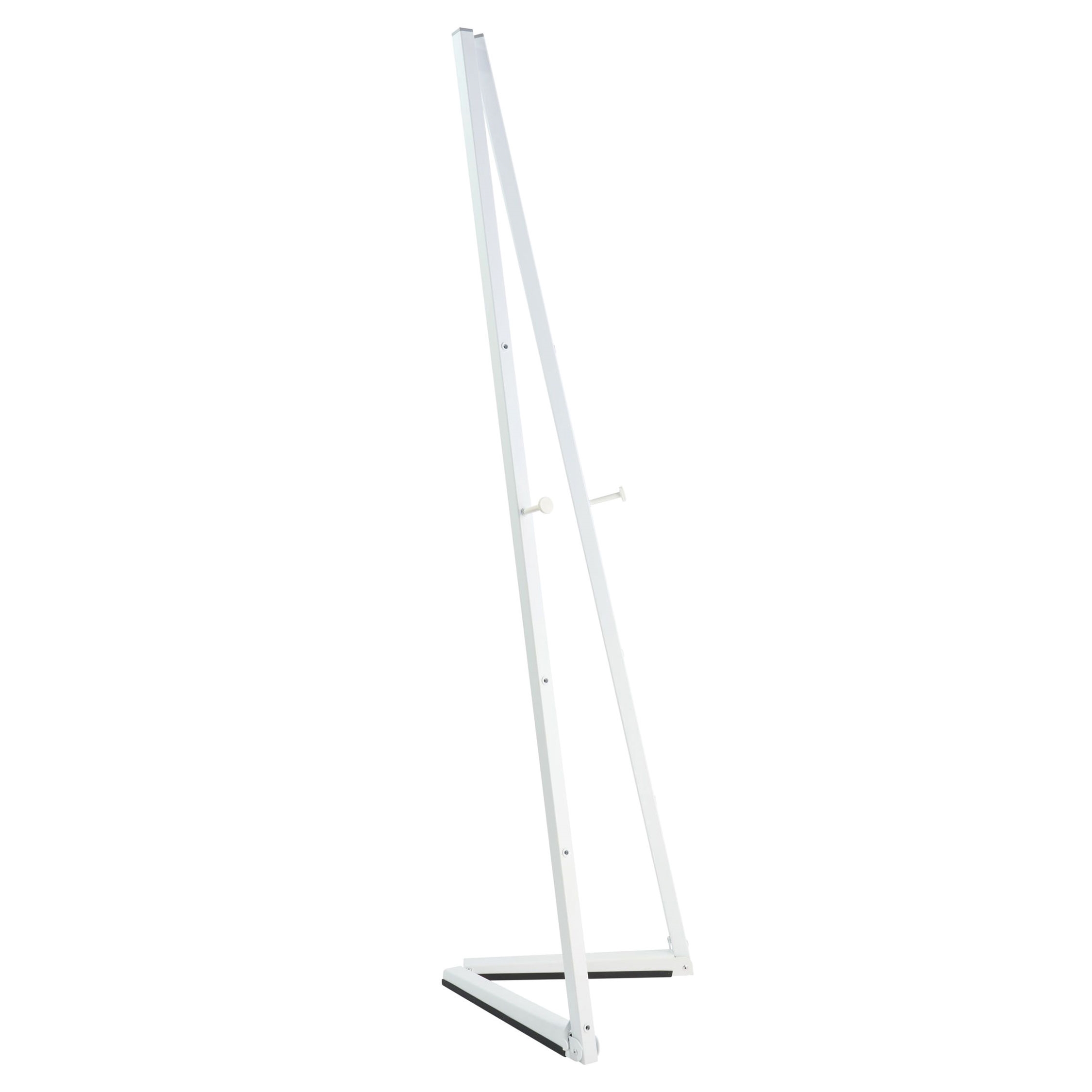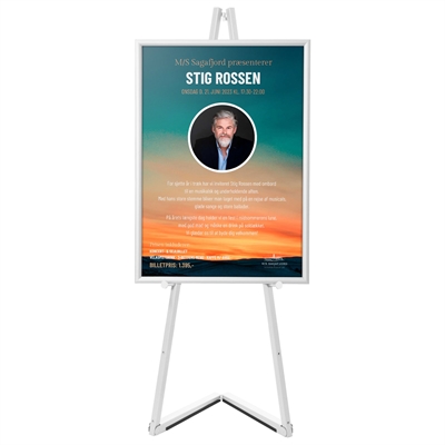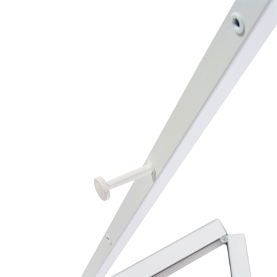 Hvitt gulvstaffeli for klikrammer er en moderne versjon av det klassiske staffeliet for malerier. Staffeliet er laget av stål med stilren hvit overflate. Et svært brukervennlig produkt som settes opp og pakkes sammen på under 30 sekunder og transporteres enkelt. Det støtter klikrammer i størrelsene: A4, A3, A2, B2, A1, B1 og A0 – både stående og liggende format.