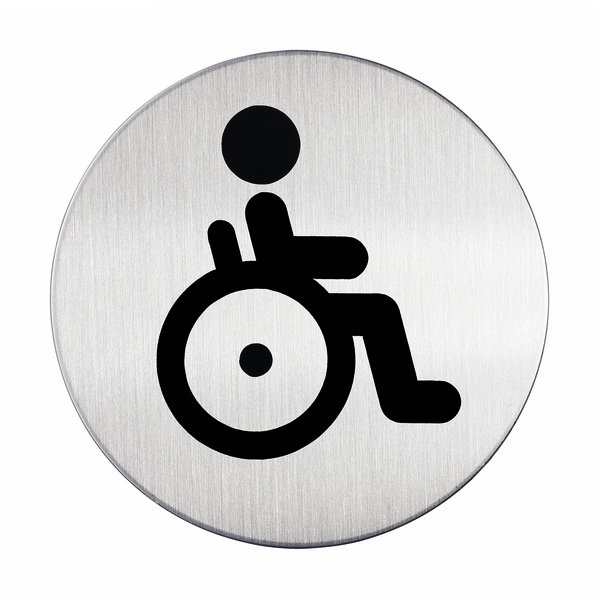 Rund Handicaptoalett skilt av børstet rustfri stål som er ripefri.