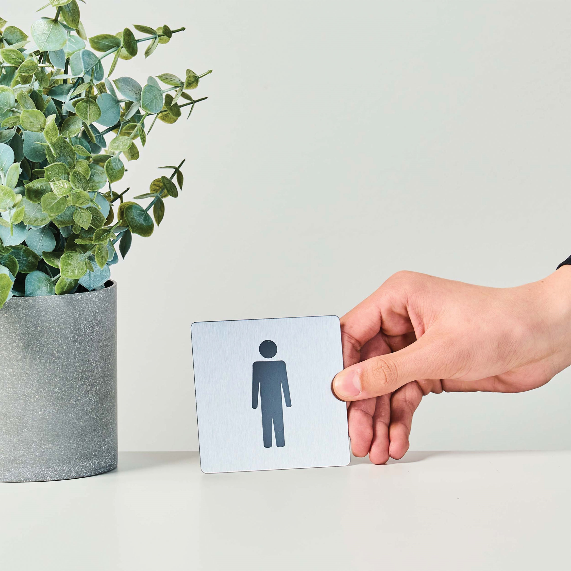 Vårt elegante piktogram i børstet rustfritt stål er en ideell løsning for tydelig merking av rom, områder eller regler. Det klassiske herretoalett-symbolet er lett å forstå og gir rask vei­visning.