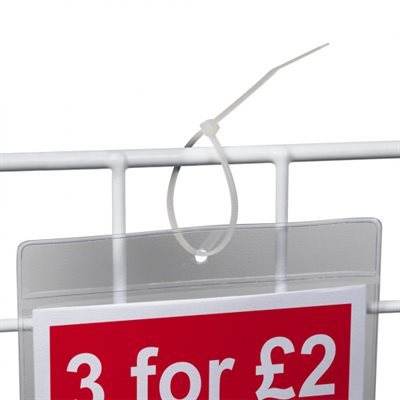 Fest etiketter, prislommer og andre skilt på kurver og utstillinger raskt og sikkert ved hjelp av kabelstrips, også kjent som kabelbinder. Disse stripene kan også brukes for å legge til ekstra styrke og sikkerhet når du monterer utstillingsenheter i detaljhandel, og de er også gode for å rydde opp kabler bak digitale skjermer og skjermer.