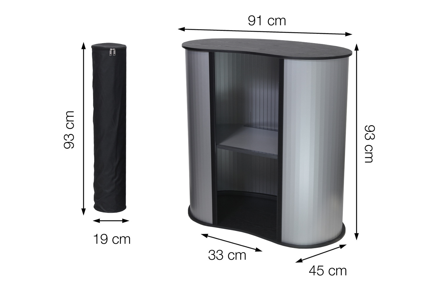 Denne messedisk er super praktisk og lett at sette opp og transportere ved hjelp av de 2 inkluderte veskene. Den tar ikke mye plass ved oppbevaring.