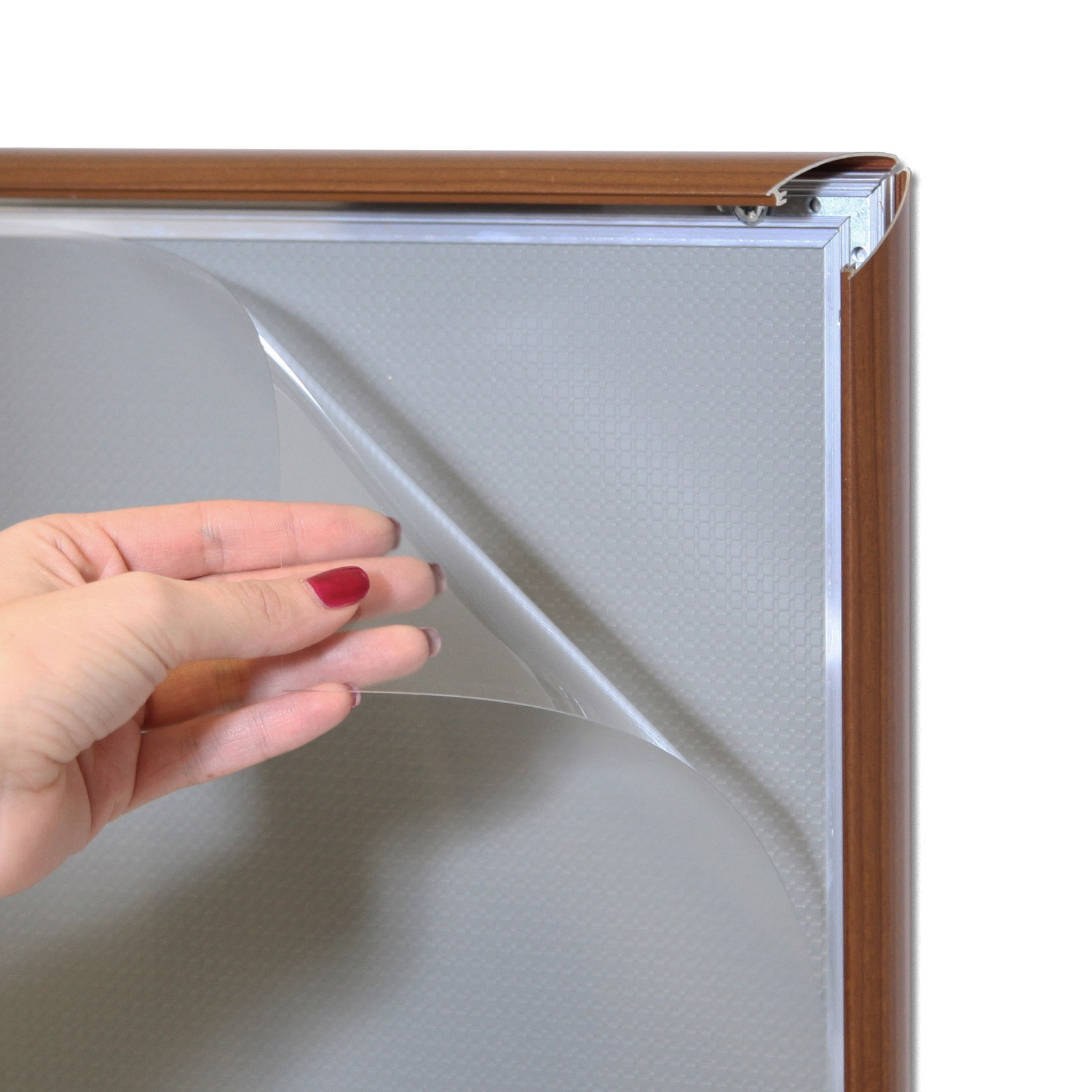 Rammen er utstyrt med 25 mm klikkprofiler, grå ps bakplate og APET antirefleks frontplate.