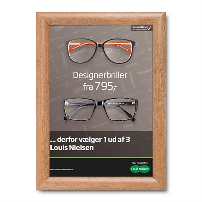 Denne stilige klikkrammen kombinerer et naturlig treutseende med moderne funksjonalitet, noe som gjør den ideell for både bedrifter og private omgivelser. Den klassiske trefinishen gir et varmt og eksklusivt uttrykk, mens den robuste aluminiumsprofilen sikrer holdbarhet og lang levetid.