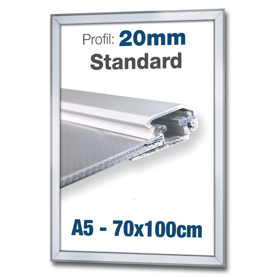 Sølv klikkrammer med flat 20 mm profil med anodisert aluminiumsfinish og gjæringshjørner.