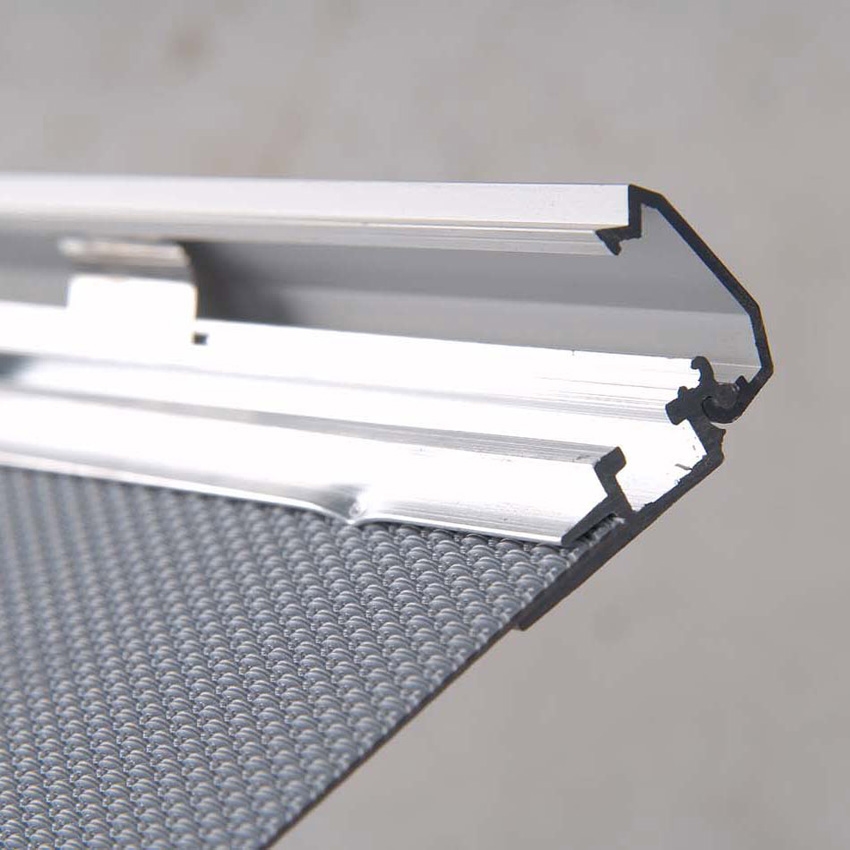 Den anodiserte overflaten på klikkrammen beholder sitt utseende i mange år – praktisk talt vedlikeholdsfritt. Den 20 mm brede omkretsprofilen har en flat skrå front.