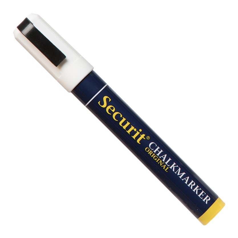 Hvit SECURIT Original kritpenn med 2-6mm spiss.