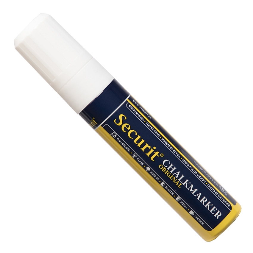 Hvit SECURIT Original kritpenn med 7-15 mm spiss.