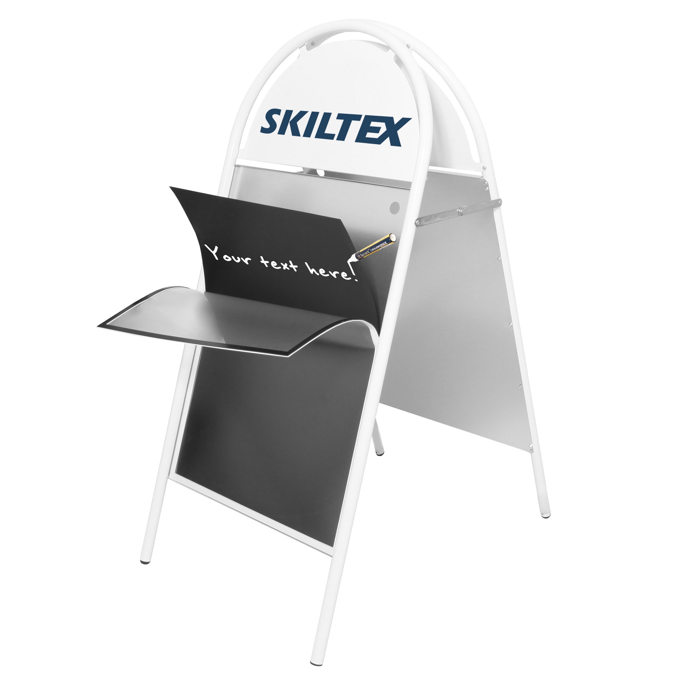 Gjør gatebukken din eller klikkrammen din til en tavle med disse dobbeltsidige krittavleplatene som enkelt kan brukes sammen med alle gatebukk/klikkrammer og annet med 50x70 cm plakatformat.