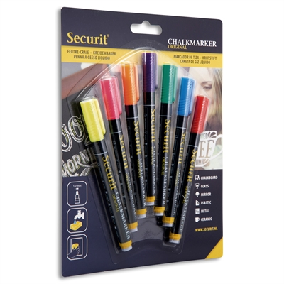 Sett med 7 SECURIT Originale krittusjer med 1-2 mm nibb i gul, rosa, oransje, lilla, rød, blå og grønn.
