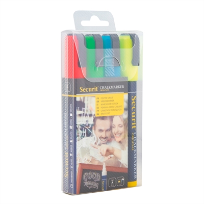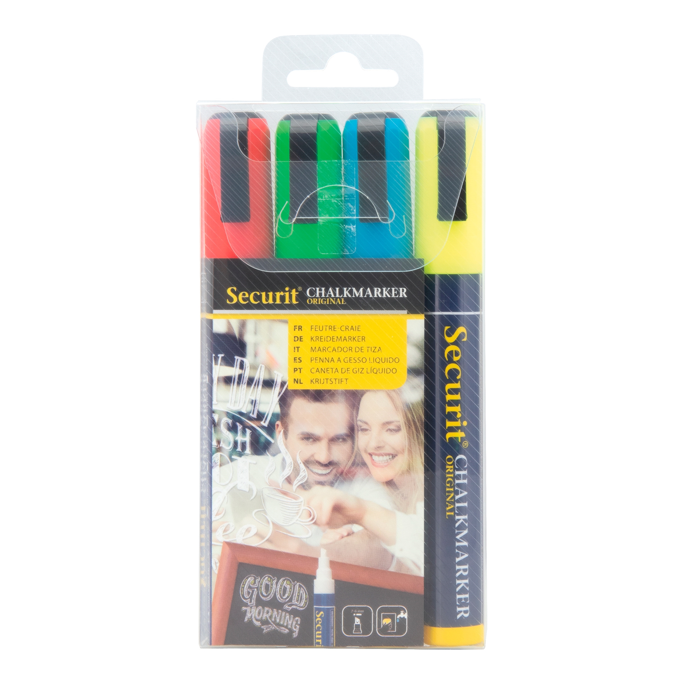 Sett med 4 Medium SECURIT Originale Krittpenn med 2-6 mm spiss i rødt, blått, gult og grønt.