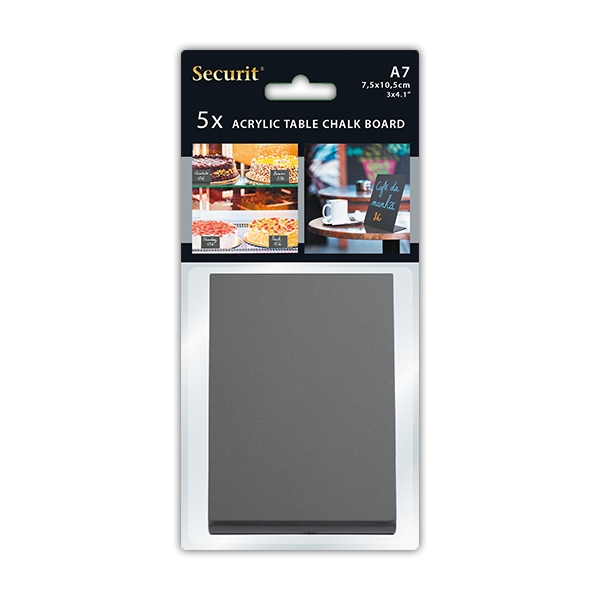 Skiltene kan skrives på med vårt Securit klassiske kritt, som raskt kan tørkes av igjen med en klut og vann.