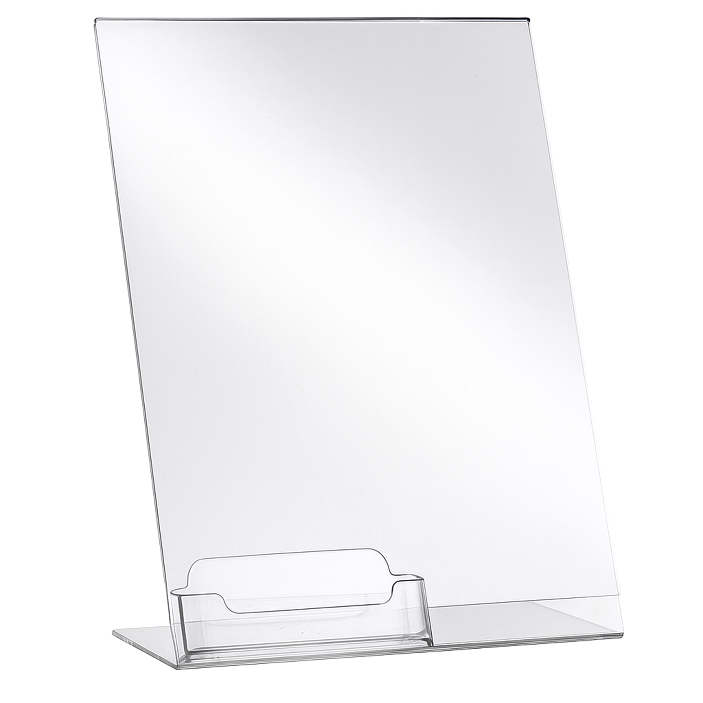 Disse skrå L-stand-skiltstativene er fremstilt av krystallklar akryl og er den perfekte løsning til å vise ditt budskap på en profesjonell og elegant måte.