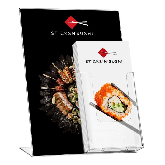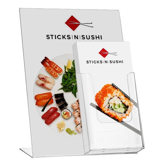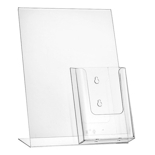 L-stand høyformat akryl A4 skiltholder med M65 brosjyreholder