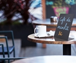 Robust og stabilt tavleskilt, som er laget av frostet, matt sort akryl og leveres i 3- eller 5-pakninger.