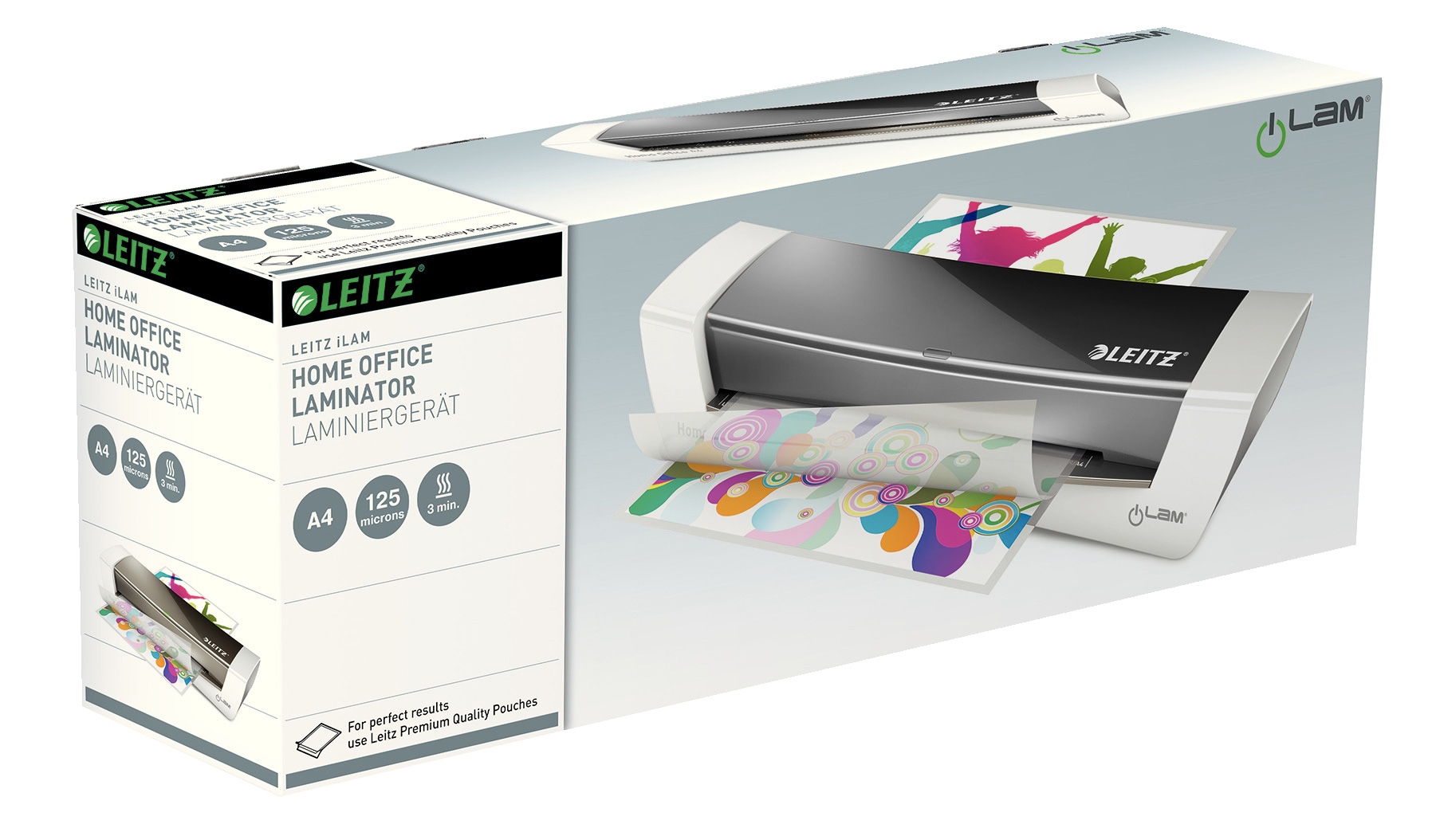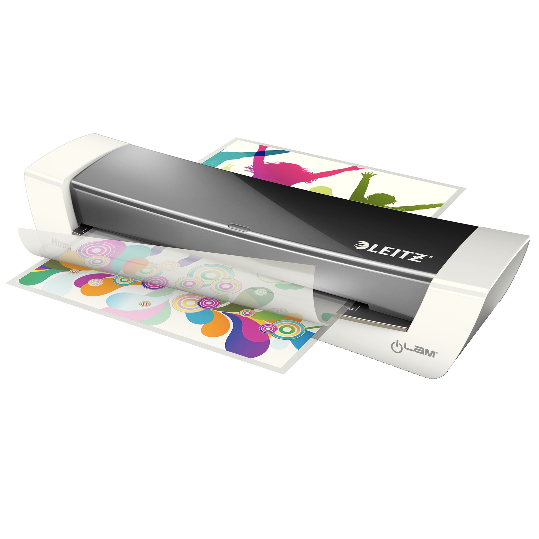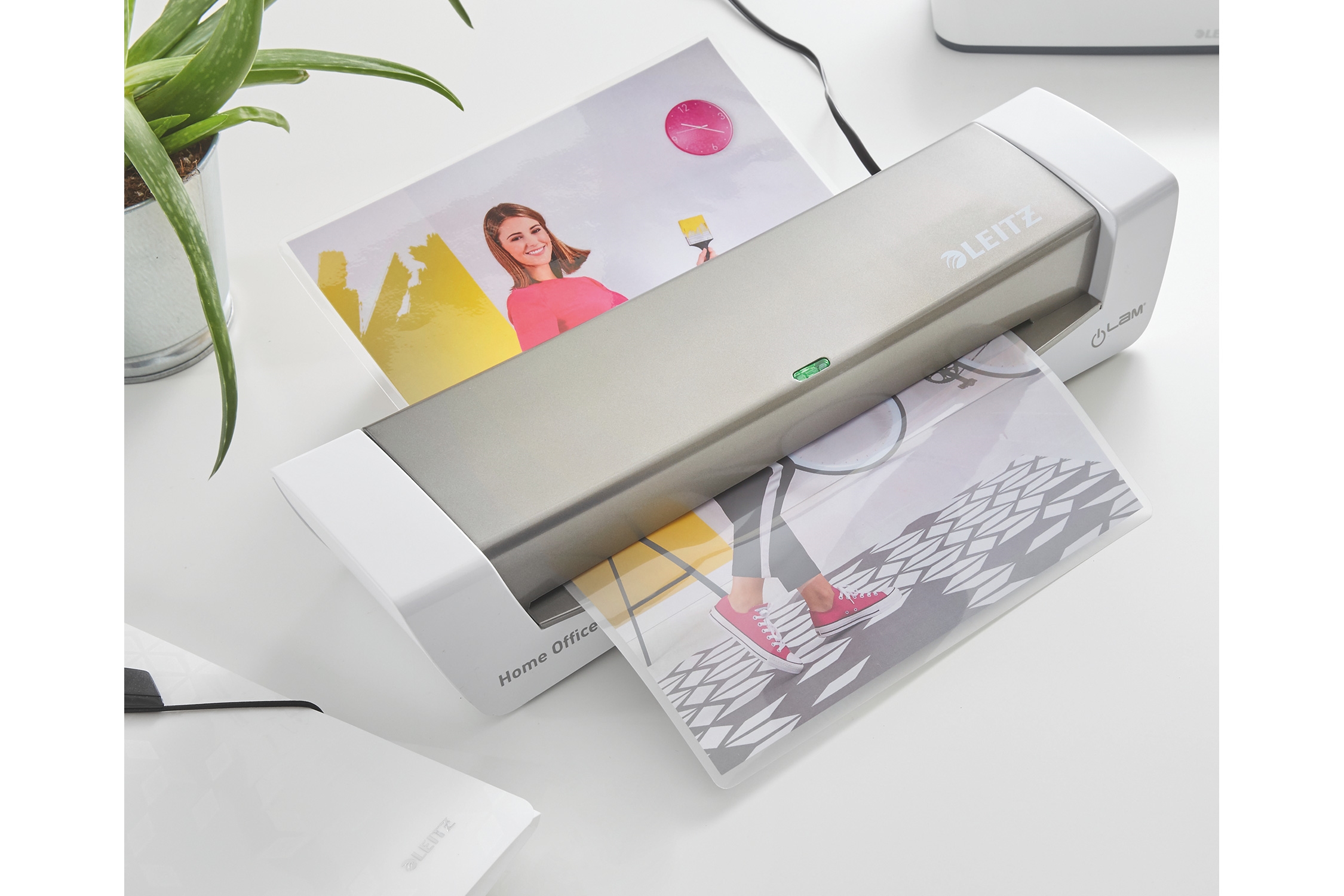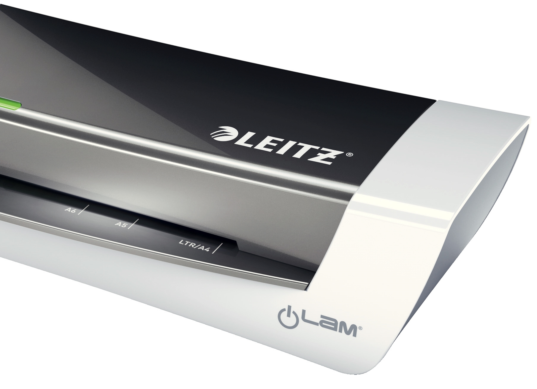 Stilfull A4 lamineringsmaskin fra Leitz i kompakt design med 3 minutters oppvarmingstid.